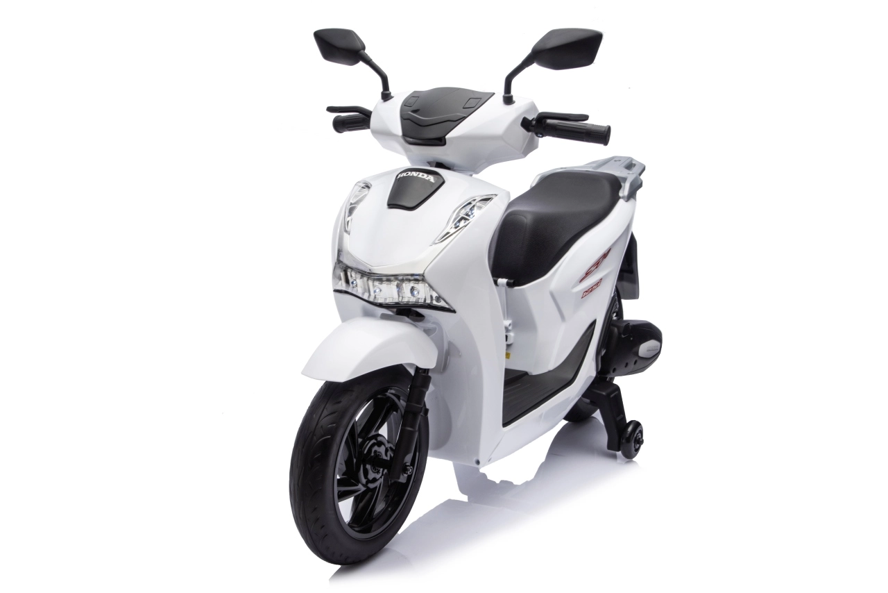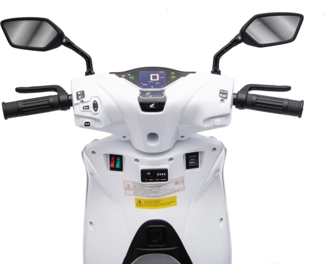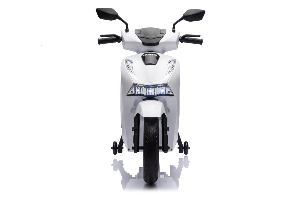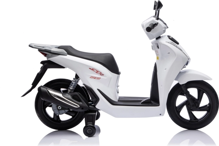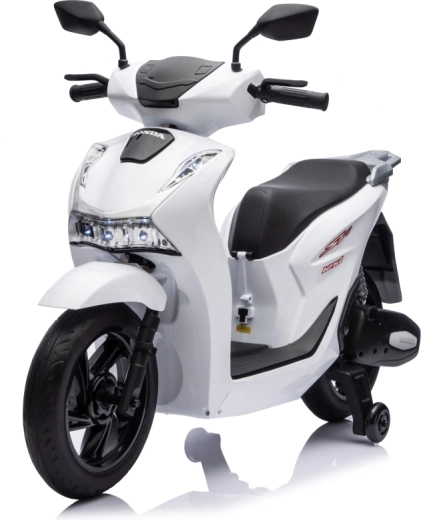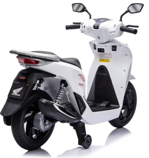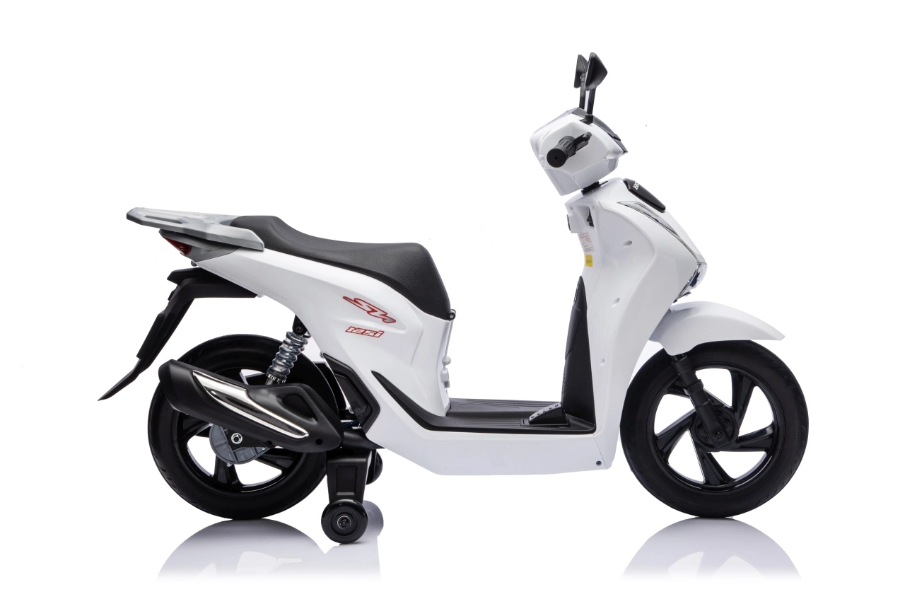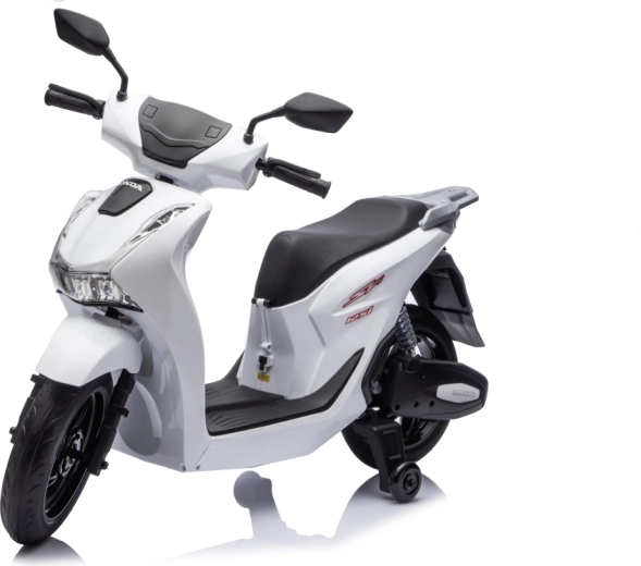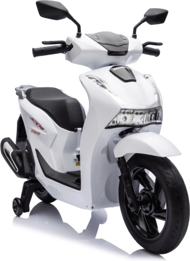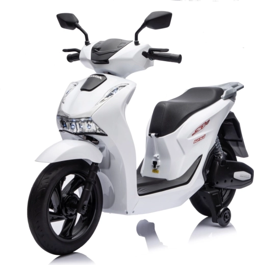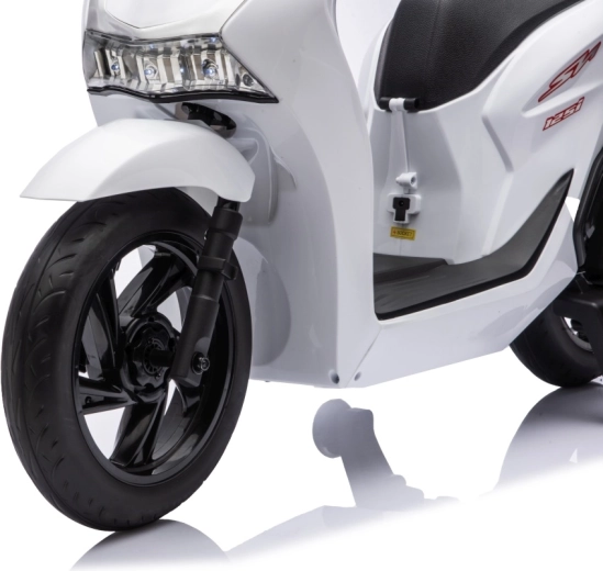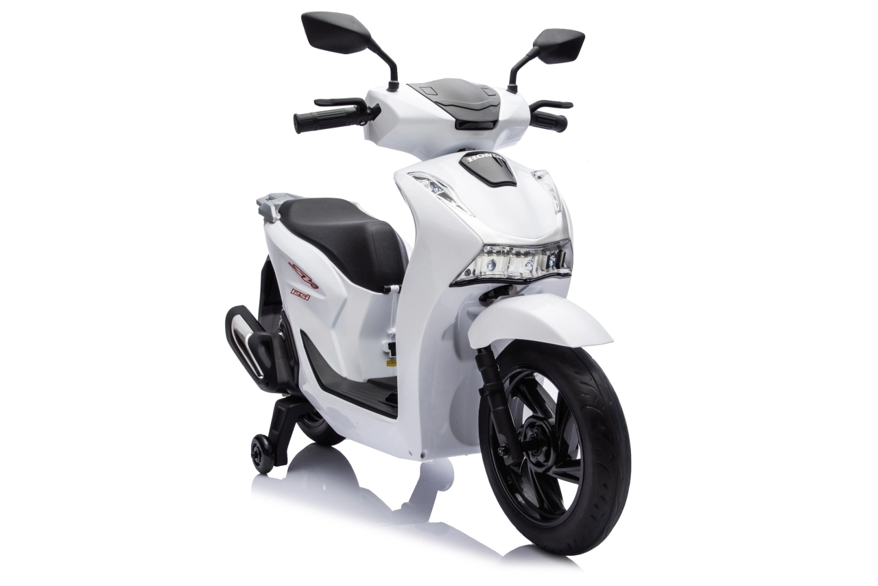Stylový dětský elektrický skútr HONDA SH125i v bílé barvě přináší realistický zážitek z jízdy pro malé jezdce. Nabízí silný 35W motor, baterii 12V 7Ah, dvě rychlosti a jízdu vpřed/vzad. O bezpečí a pohodlí se starají boční stabilizační kolečka, EVA kola a zadní tlumiče s regulací. Vestavěný audio panel s Bluetooth, MP3, AUX a přední LED světla doplňují realistický vzhled a zábavu.