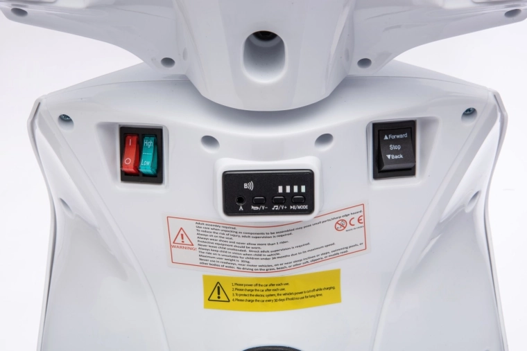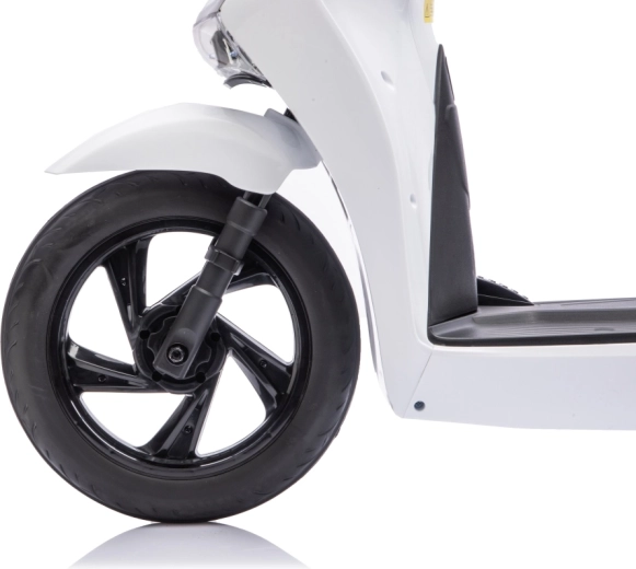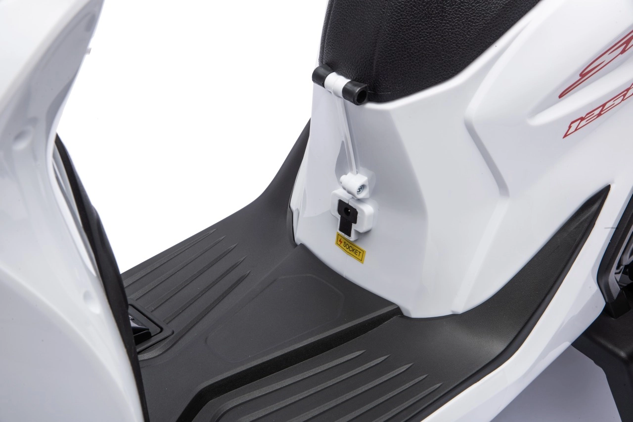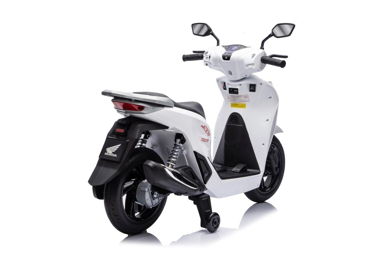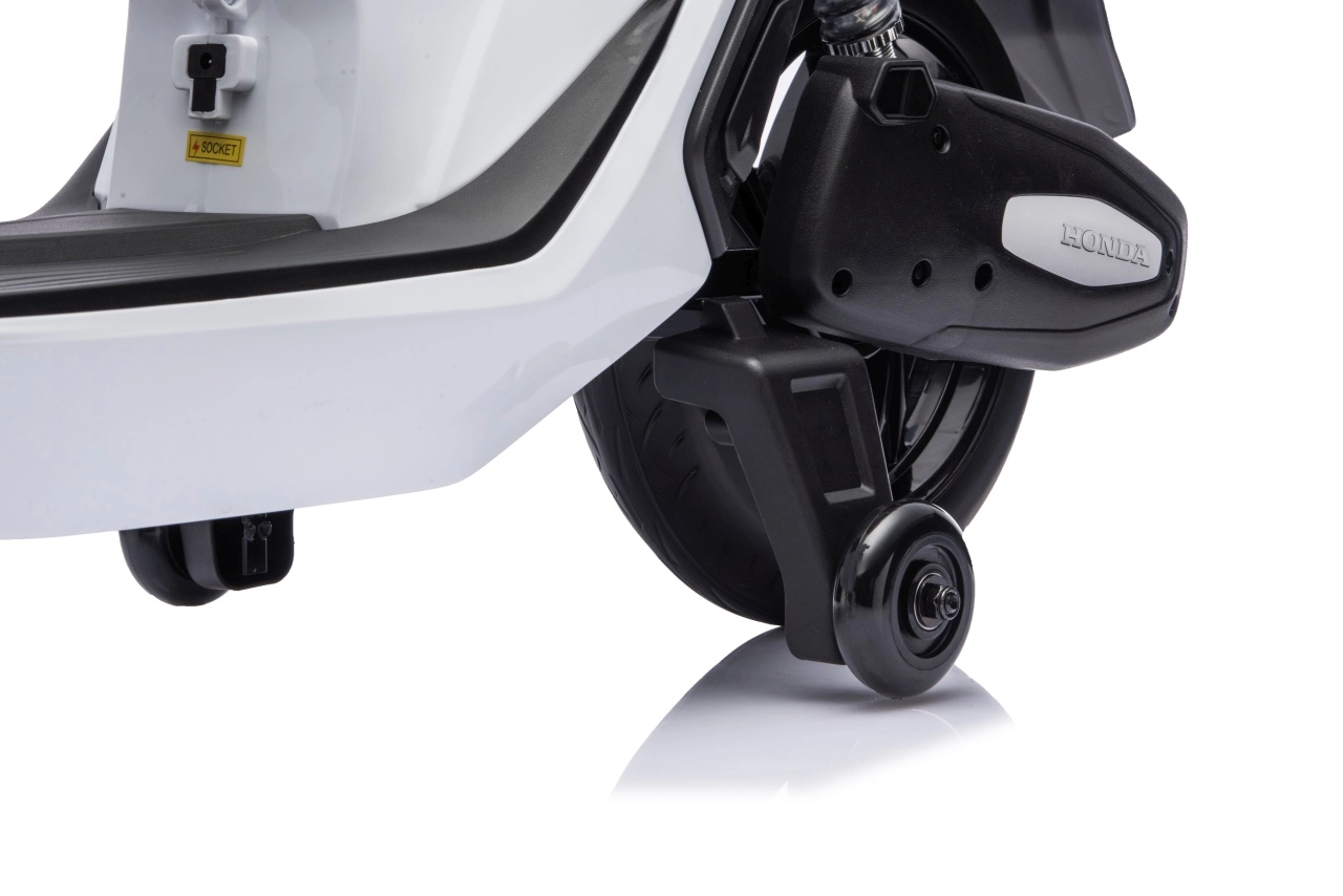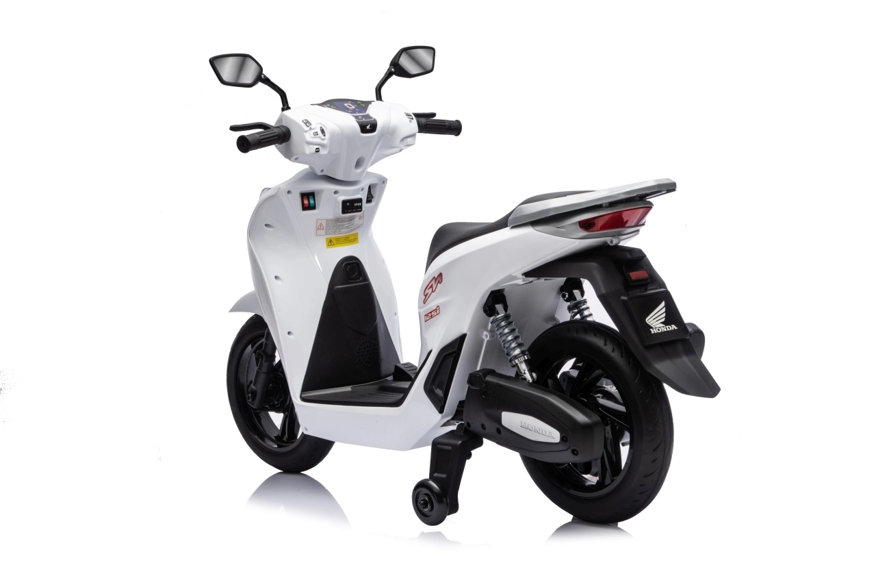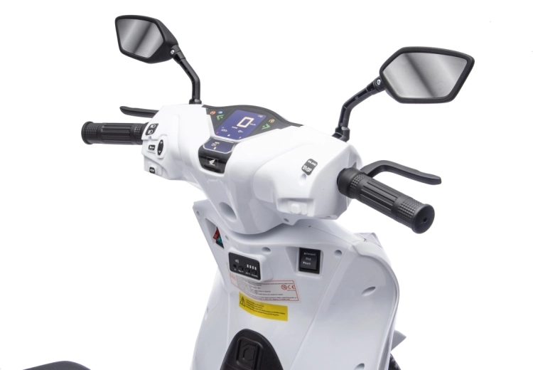 Stylový dětský elektrický skútr HONDA SH125i v bílé barvě přináší realistický zážitek z jízdy pro malé jezdce. Nabízí silný 35W motor, baterii 12V 7Ah, dvě rychlosti a jízdu vpřed/vzad. O bezpečí a pohodlí se starají boční stabilizační kolečka, EVA kola a zadní tlumiče s regulací. Vestavěný audio panel s Bluetooth, MP3, AUX a přední LED světla doplňují realistický vzhled a zábavu.