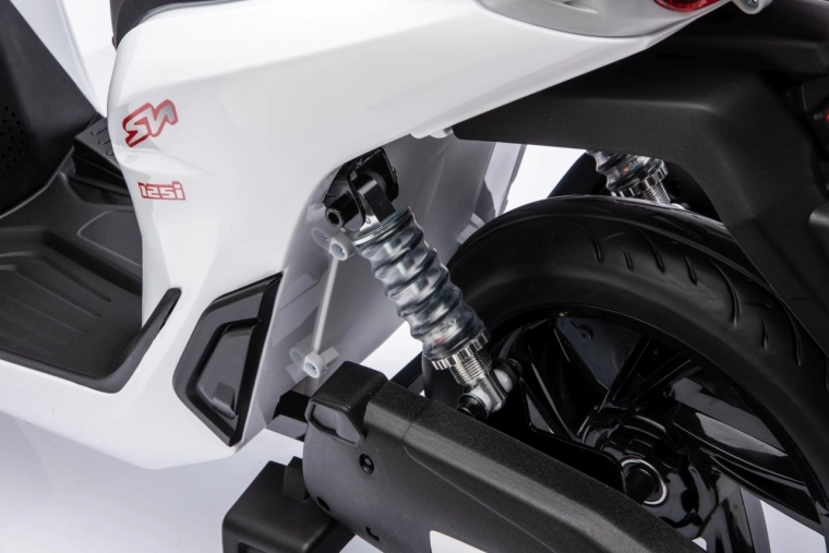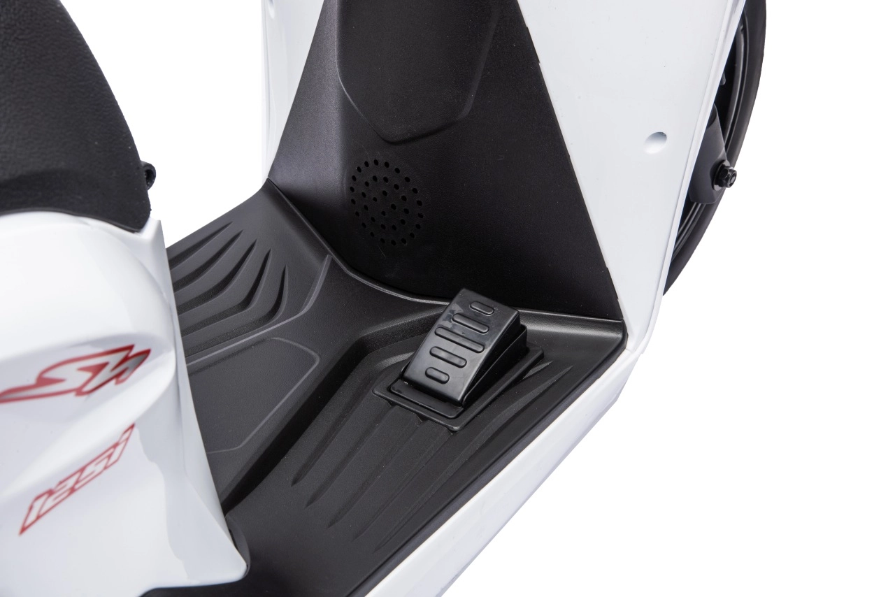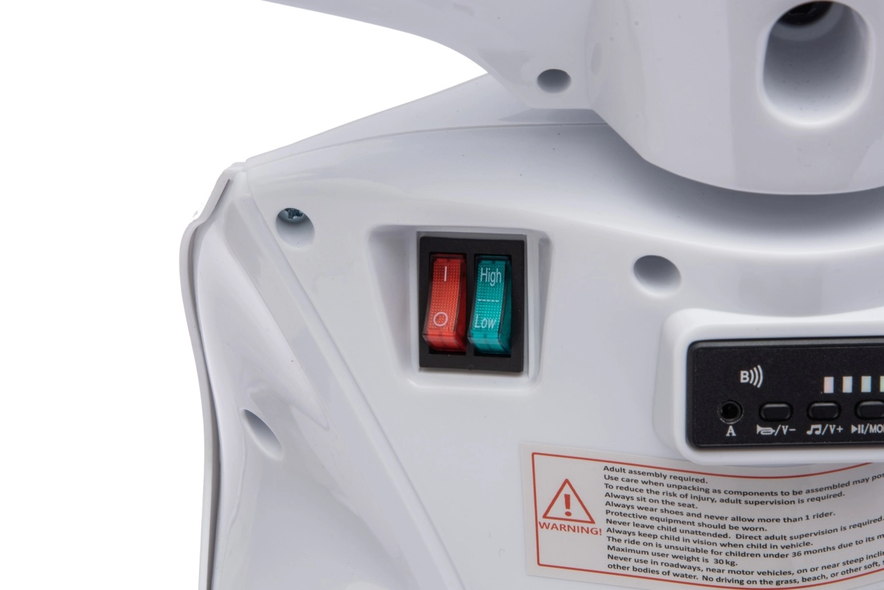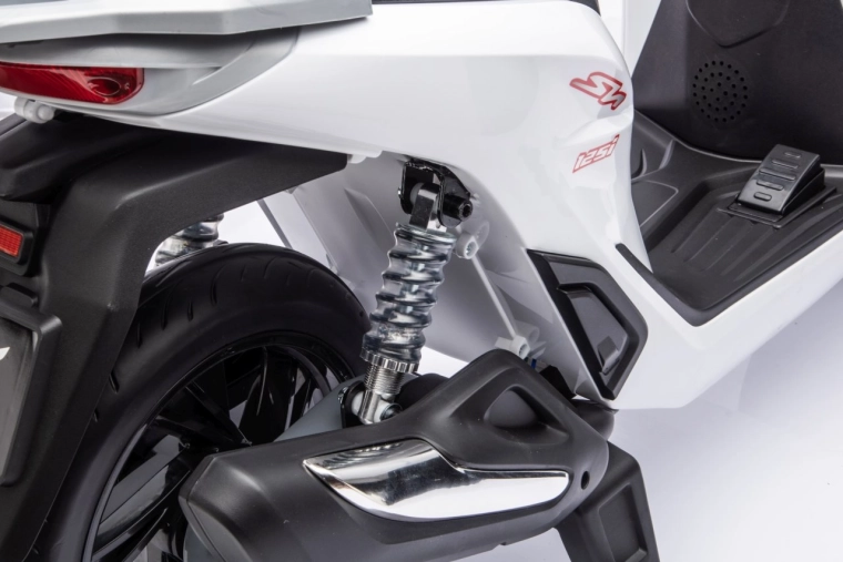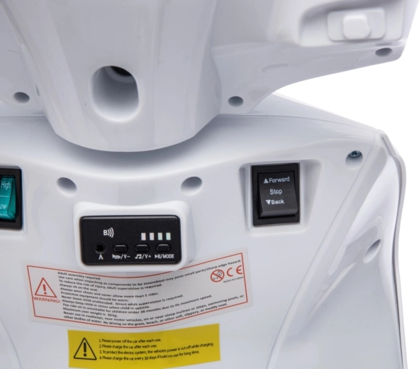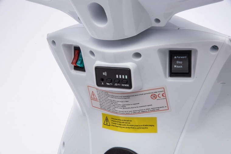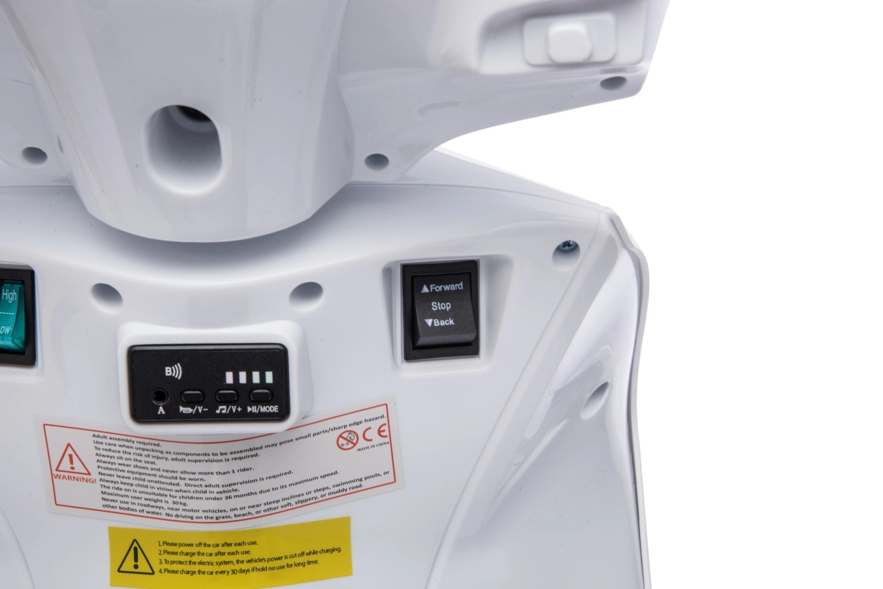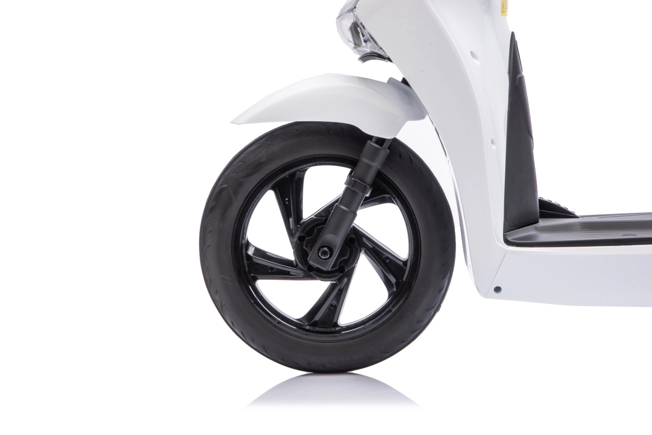 Stylový dětský elektrický skútr HONDA SH125i v bílé barvě přináší realistický zážitek z jízdy pro malé jezdce. Nabízí silný 35W motor, baterii 12V 7Ah, dvě rychlosti a jízdu vpřed/vzad. O bezpečí a pohodlí se starají boční stabilizační kolečka, EVA kola a zadní tlumiče s regulací. Vestavěný audio panel s Bluetooth, MP3, AUX a přední LED světla doplňují realistický vzhled a zábavu.