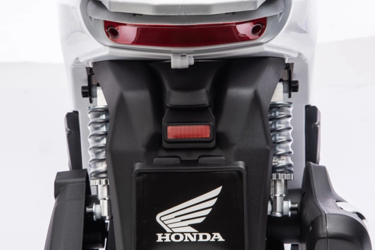 - Styl a viditelnost: výrazná bílá karoserie se značkou HONDA, přední LED světla s vypínačem.