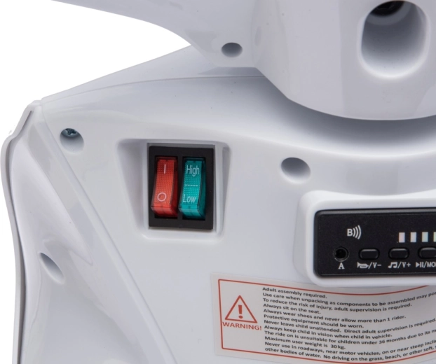 Realistické detaily jako přední LED světla, zpětná zrcátka a funkční panel s Bluetooth/MP3/AUX promění každou vyjížďku ve velké dobrodružství. Dvojité zadní tlumiče s regulací a pomocná boční kolečka dodají stabilitu začínajícím jezdcům, zatímco výkonná baterie 12V 7Ah zajistí dostatek energie na zábavu.