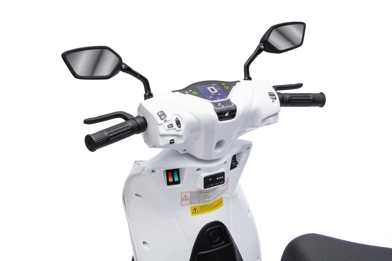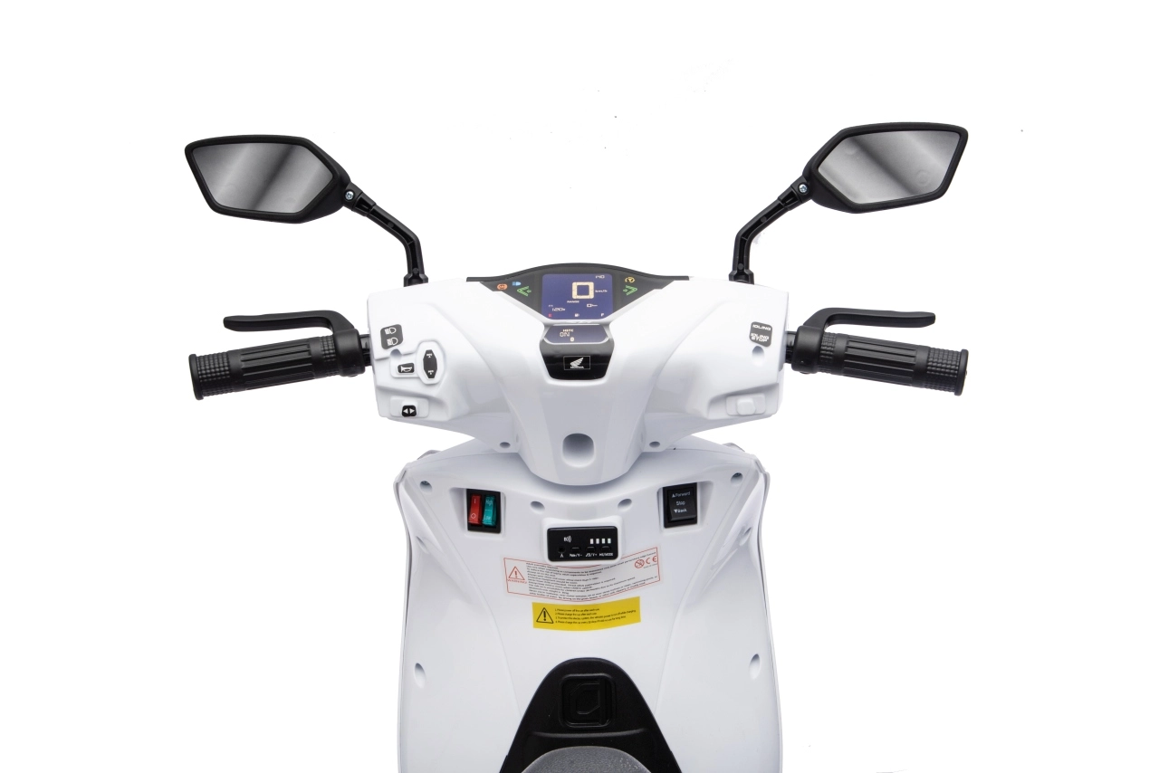 Dopřejte dětem radost z jízdy na elegantním skútru inspirovaném skutečným modelem HONDA. Elektrický skútr HONDA SH125i je navržen pro pohodlné a bezpečné svezení – disponuje plynulým rozjezdem, dvěma rychlostmi a možností jízdy vpřed i vzad. Široká stabilní platforma, měkké sedlo z ekokůže a EVA kola zajišťují komfort na různých površích.