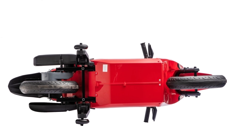 - Komfort jízdy: EVA kola 32 × 7 cm, 2 zadní tlumiče s regulací, měkké sedlo 34 × 20 cm.