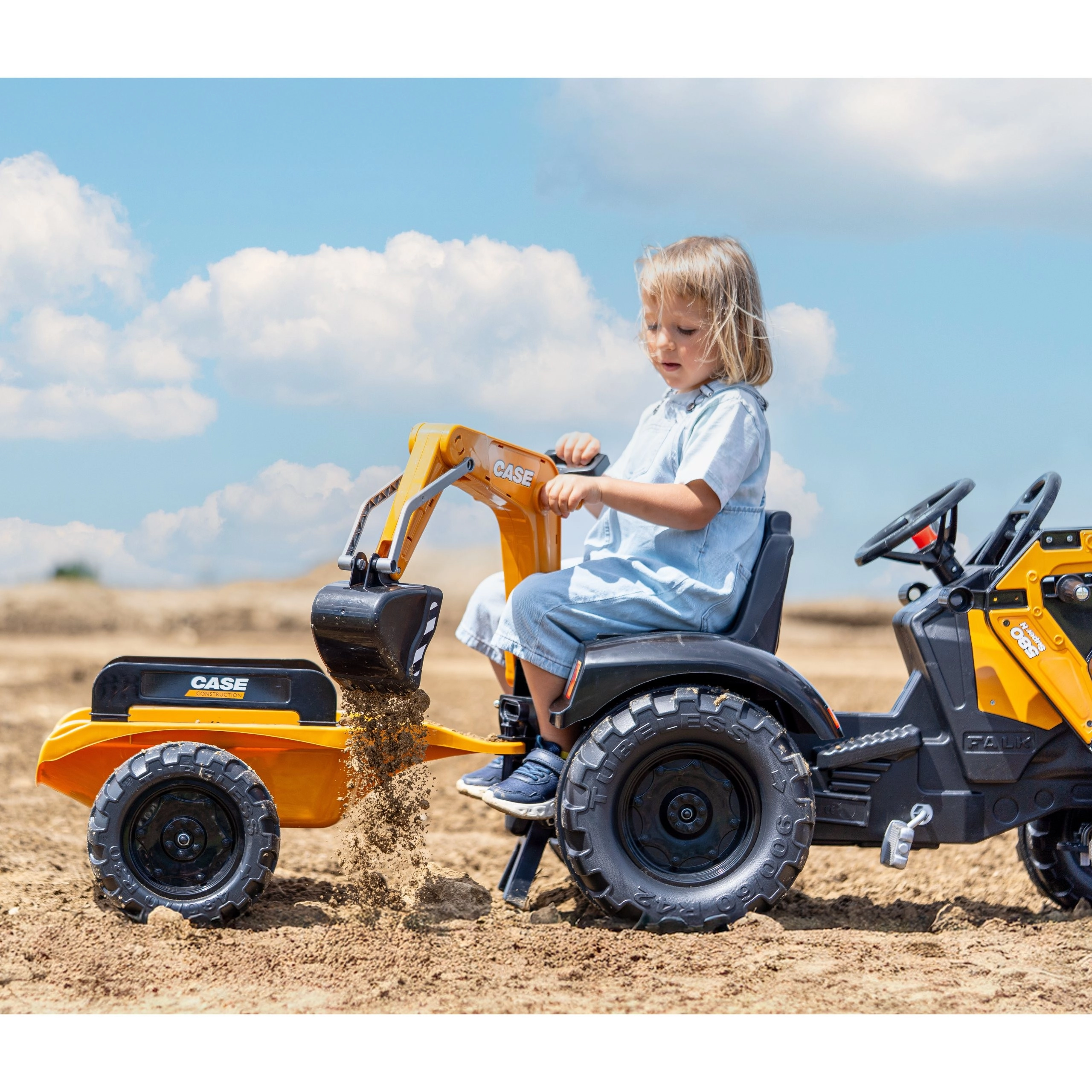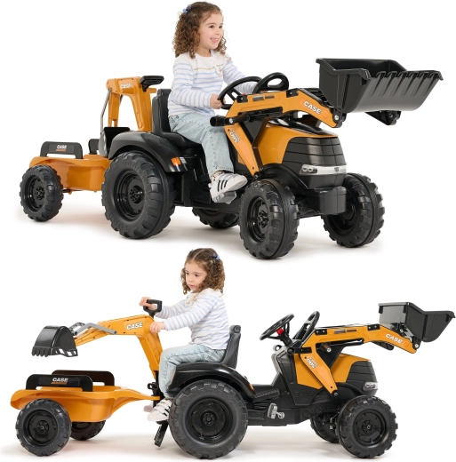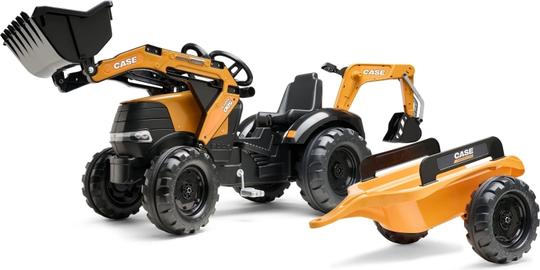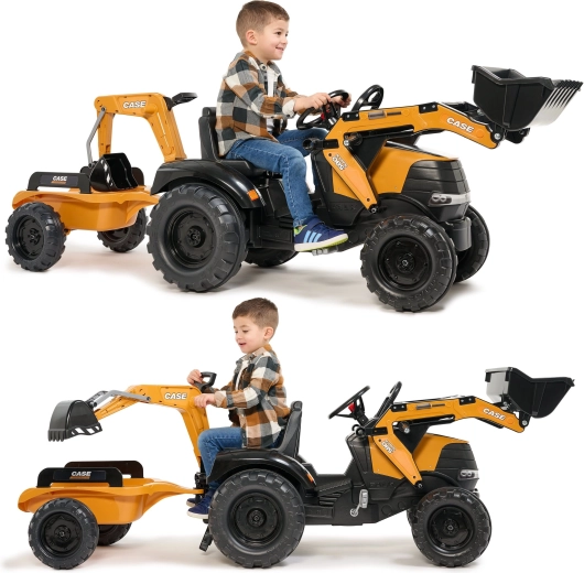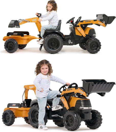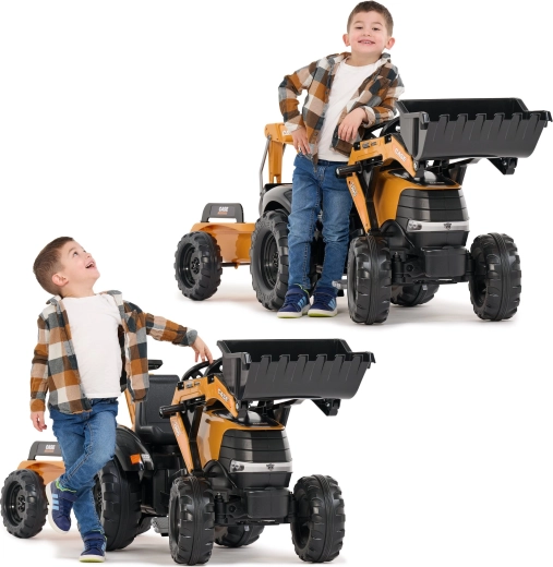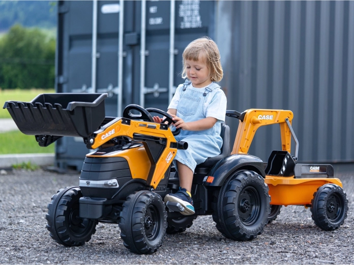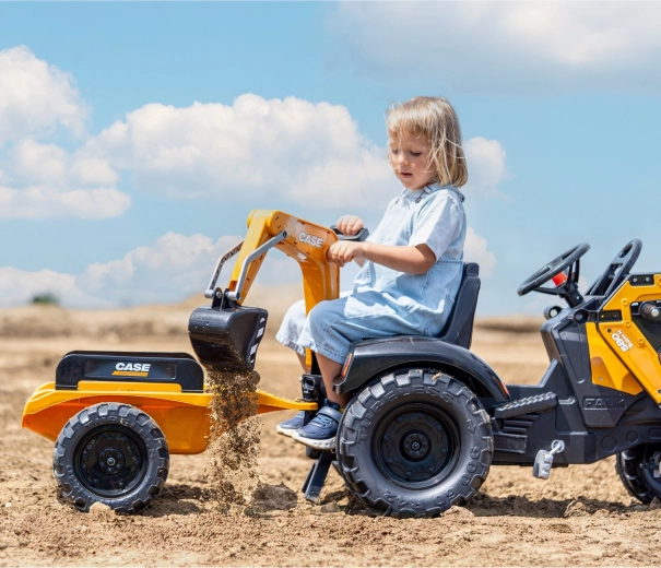 Užijte si hodiny venkovní zábavy s robustním šlapacím traktorem CASE, který kombinuje realistické funkce stavební techniky a bezpečný provoz pro děti. Přední nakladač i zadní bagr jsou kloubové a skutečně nabírají písek, hlínu či listí, zatímco otočné sedlo 360° zajišťuje pohodlnou obsluhu z obou stran.