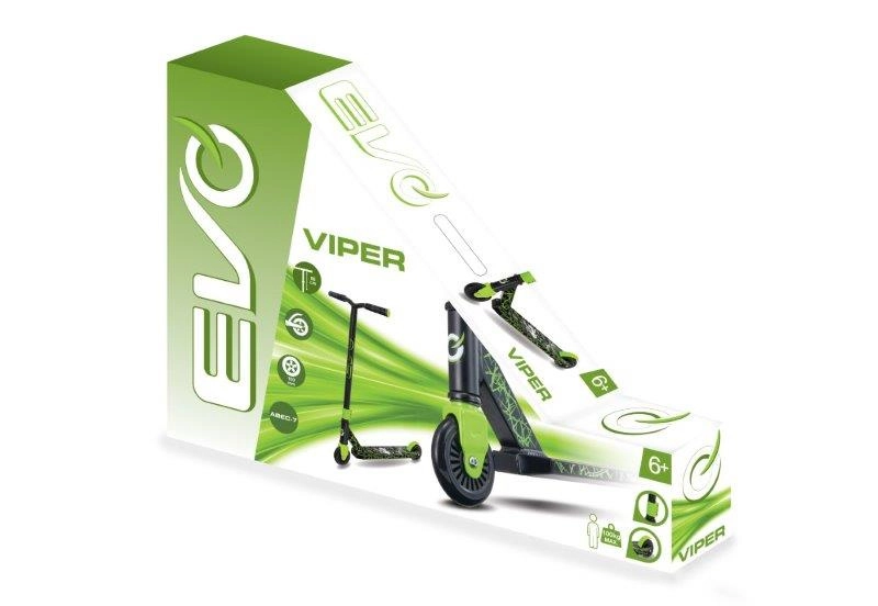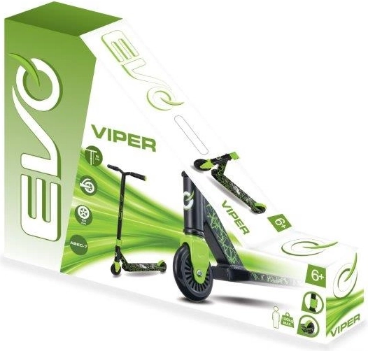 Koloběžka EVO Viper v černo‑zeleném provedení je skvělou volbou pro děti, které chtějí rozvíjet rovnováhu, koordinaci a jistotu v jízdě. Pevný rám, kompaktní kolečka a zadní blatníková brzda z ní dělají spolehlivého parťáka do parku, na dvůr i na chodník. Díky ložiskům ABEC‑7 se snadno rozjíždí a drží plynulou rychlost.