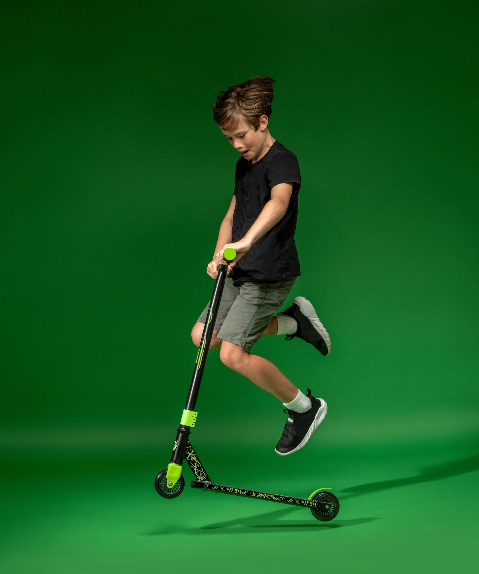 Model je navržen pro malé ridery od 6 let – nabízí stabilitu, bezpečné ovládání a možnost zkoušet jednoduché triky. Protiskluzová deska s výraznou grafikou a odolné T-bar řídítko s neklouzavými TPE gripy přidávají na komfortu i kontrole.
