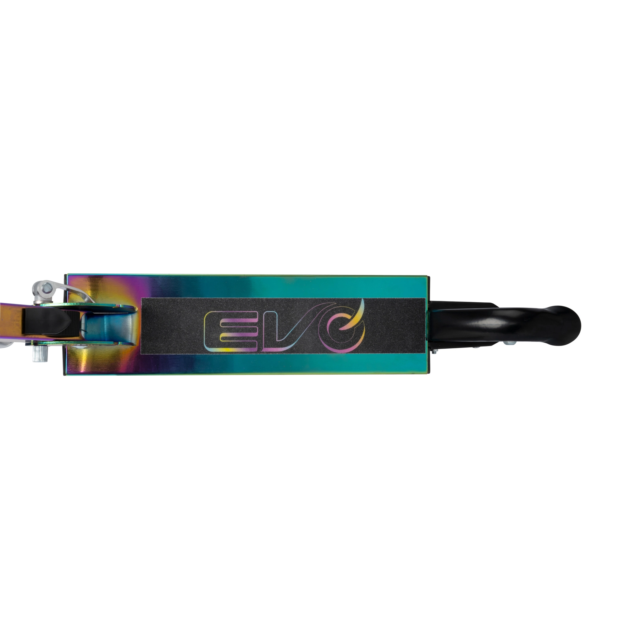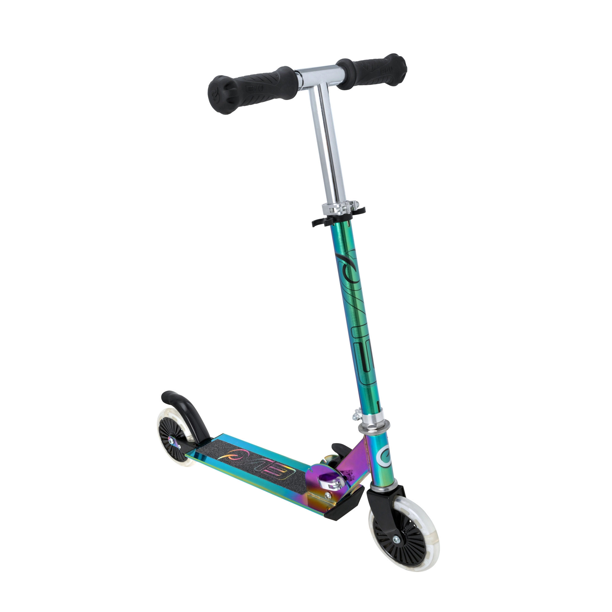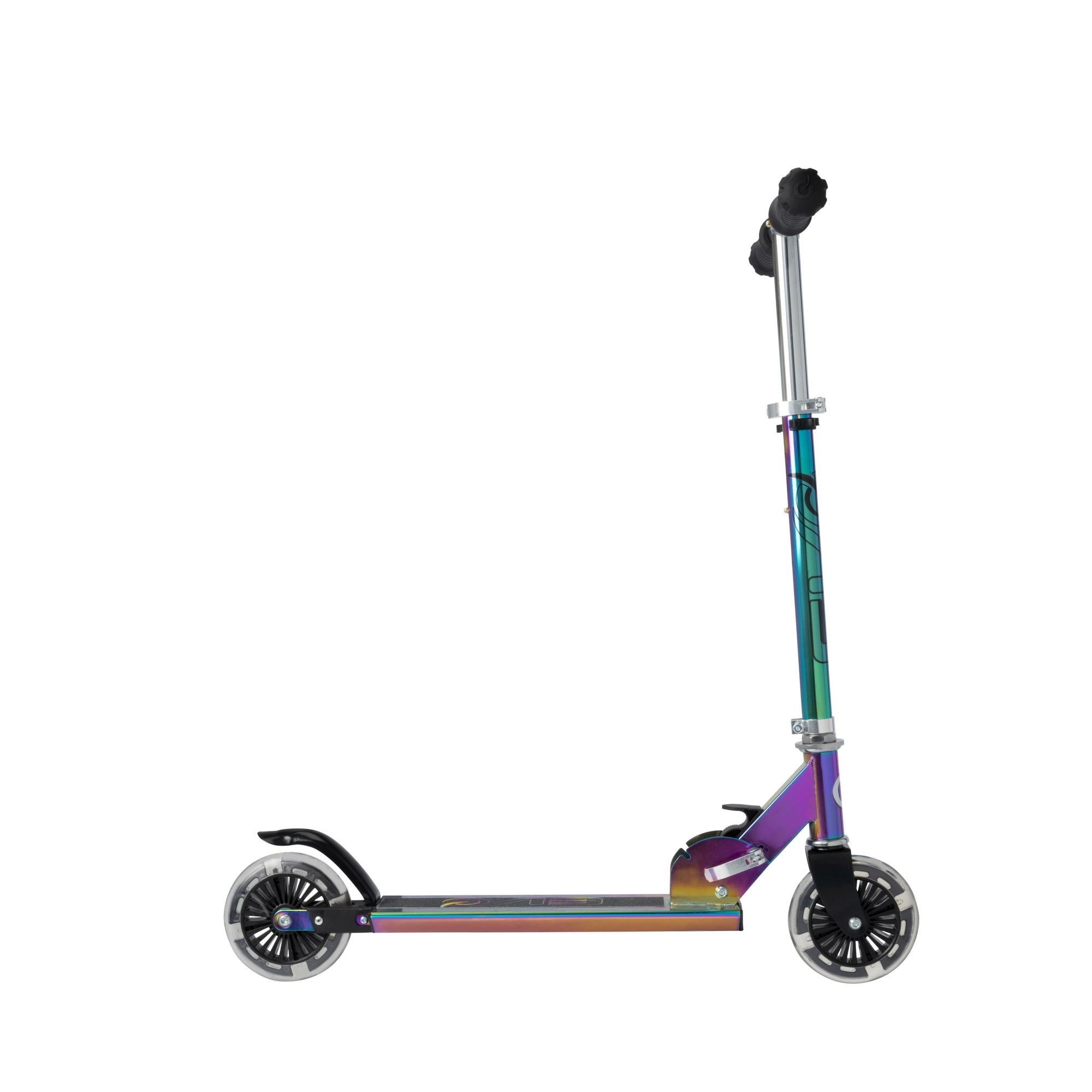 Koloběžka EVO Light Up Neochrome je skvělou volbou pro malé jezdce, kteří chtějí vyniknout. Díky nastavitelným řídítkům (cca 67–77 cm) roste s dítětem, skládací mechanismus usnadní přenášení i skladování a odolná kovová konstrukce s protiskluzovou nášlapnou plochou dodá jistotu při jízdě.