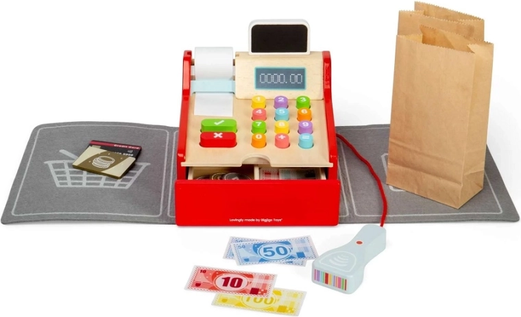 Učení hrou je zábava: děti se učí sčítat a odčítat, trénují komunikaci se „zákazníky“ a posilují sebevědomí. Díky certifikovanému FSC® dřevu je hračka nejen bezpečná a odolná, ale také ohleduplná k životnímu prostředí.