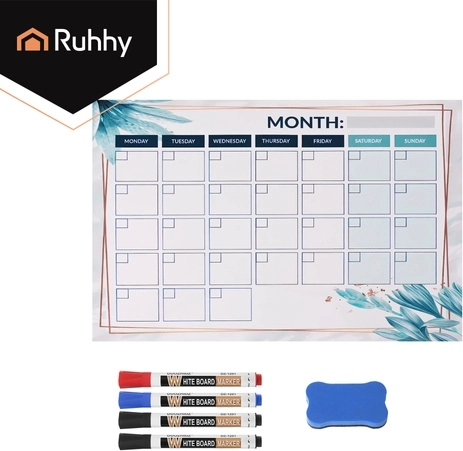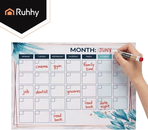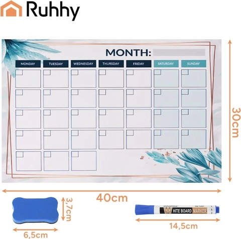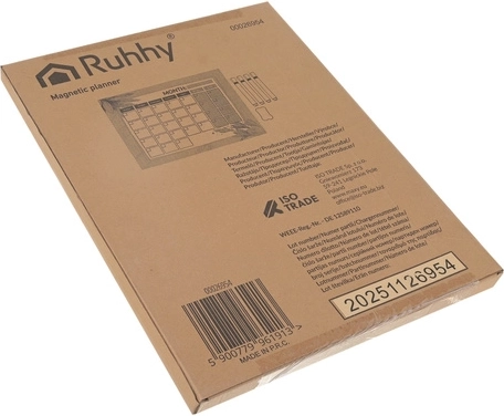 Magnetický plánovač RUHHY o rozměrech 30 × 40 cm je praktické centrum domácí organizace. Díky sucho stíratelnému povrchu umožňuje rychlé zapisování plánů, snadné mazání bez šmouh a přehledné řízení dne, týdne i měsíce. Na lednici je vždy na očích, pevně drží díky magnetu a v balení najdete 4 popisovače a magnetickou houbičku pro okamžité použití.