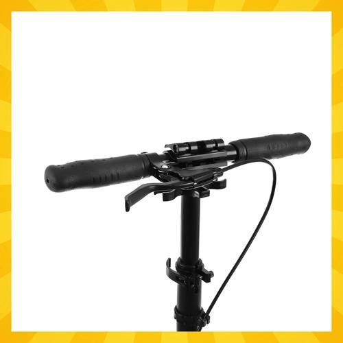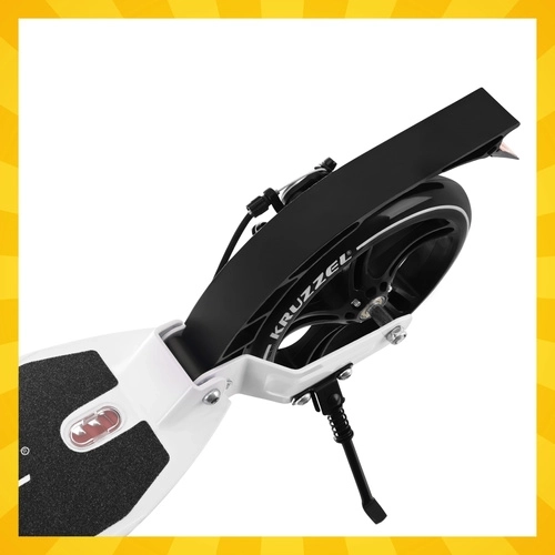 O bezpečné zastavení se stará ruční kotoučová brzda doplněná o nožní brzdu v zadním blatníku. 4stupňová regulace výšky řídítek zaručí pohodlný postoj dětem i dospělým. Hliníková konstrukce je lehká a odolná, rychlé skládání a praktický stojánek usnadní parkování i přepravu v MHD.