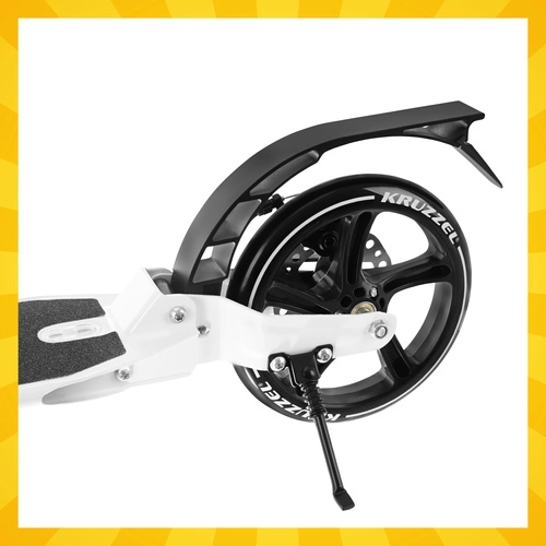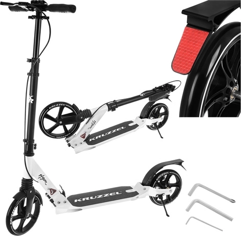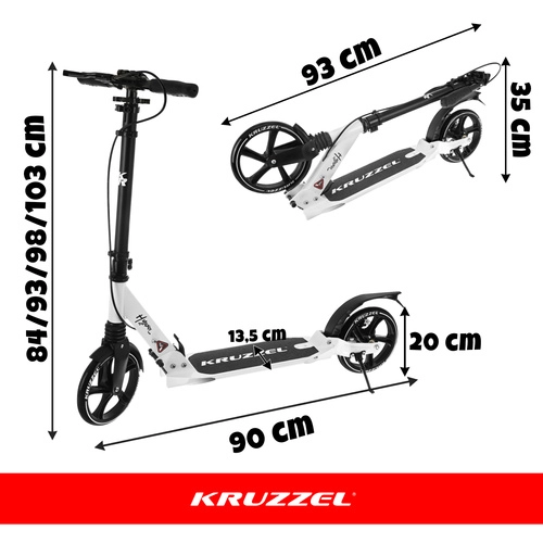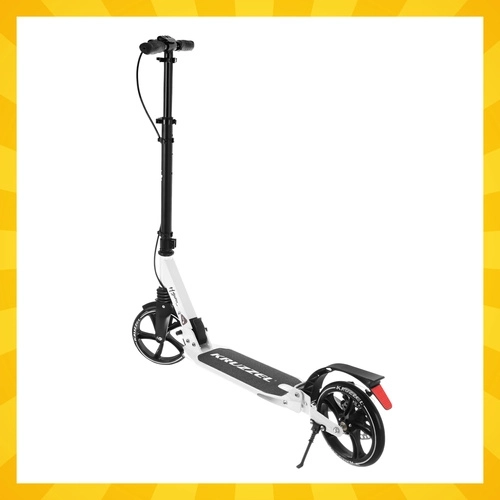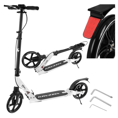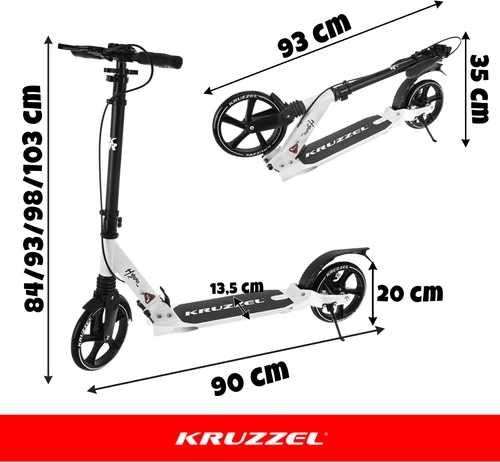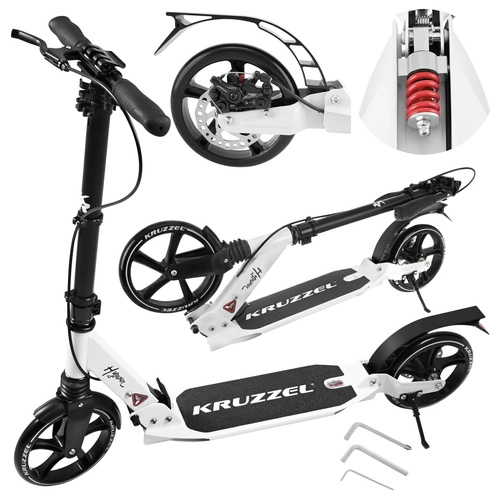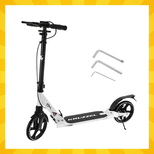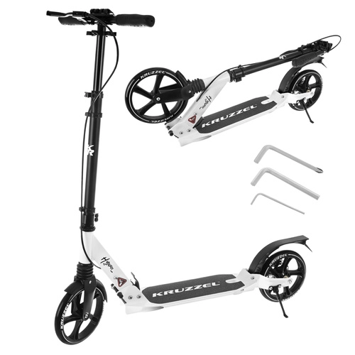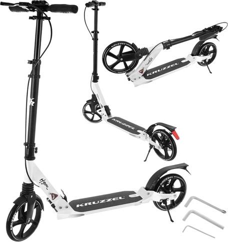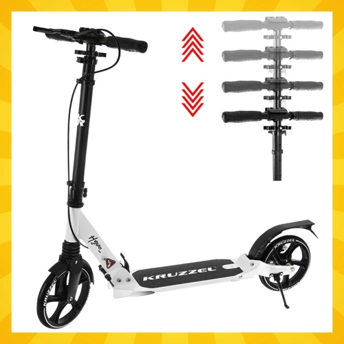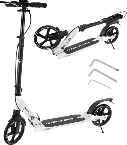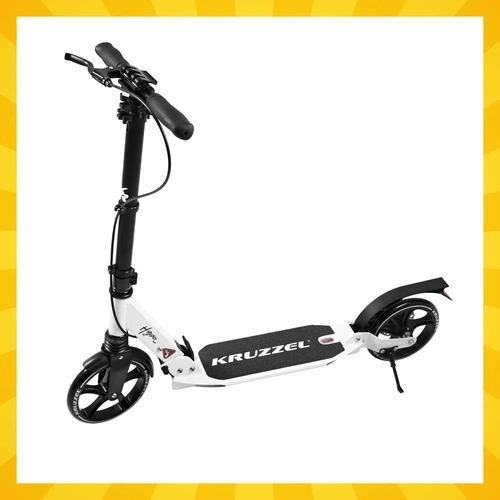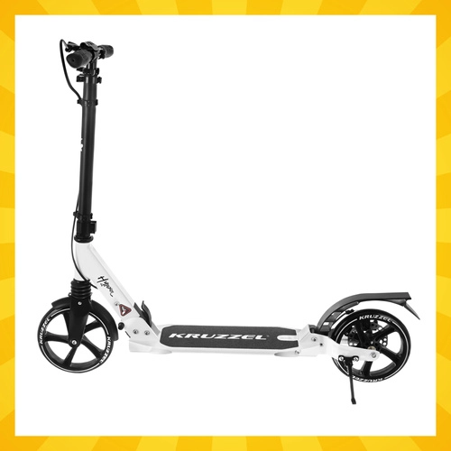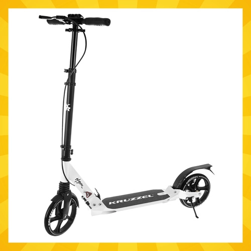 Prémiová skládací koloběžka KRUZZEL Hyperion pro děti i dospělé nabízí velká 200mm gumová kola, ložiska ABEC-9, dvousystémové brzdění (ruční a nožní) a lehký hliníkový rám. Díky rychlému skládání, odpružení a nastavitelné výšce řídítek je ideální pro pohodlné a bezpečné dojíždění po chodnících a cyklostezkách.