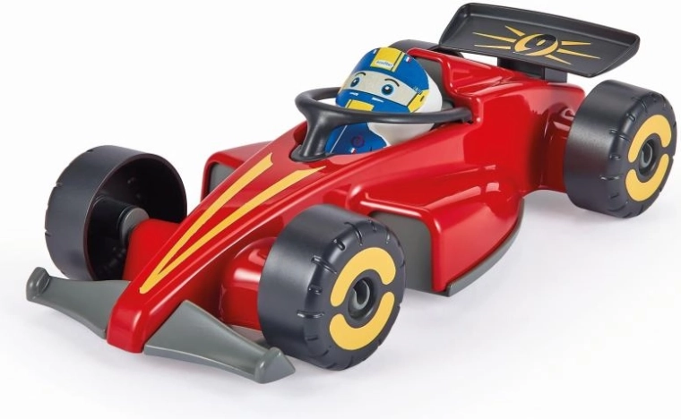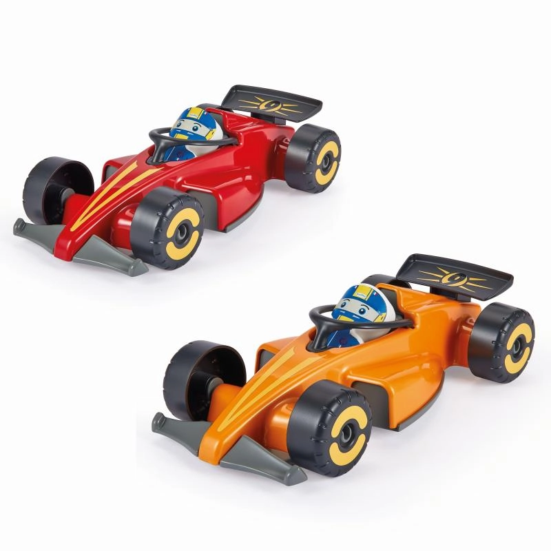 Model je k dispozici ve dvou barevných provedeních (červená a oranžová) s veselým řidičem v kokpitu. Ideální jako první závodní auto do sbírky – snadno se ovládá, je lehké a odolné proti nárazům.