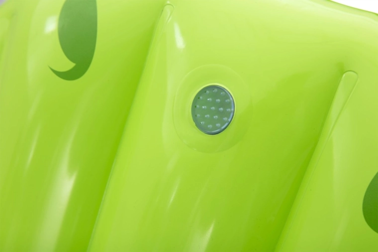 Žebrovaný povrch a nafukované bočnice zvyšují komfort a jistotu při jízdě, zatímco měkká přistávací zóna tlumí dopad do mělké vody.