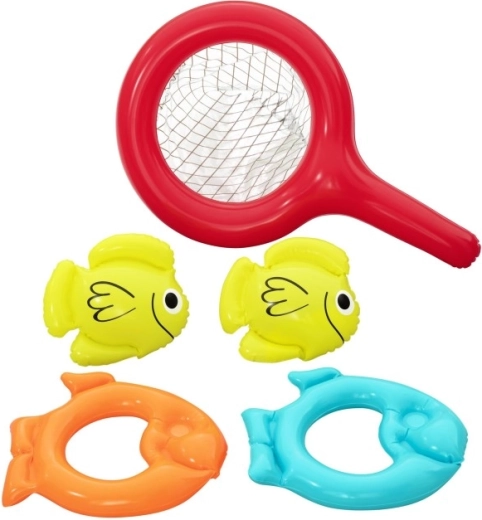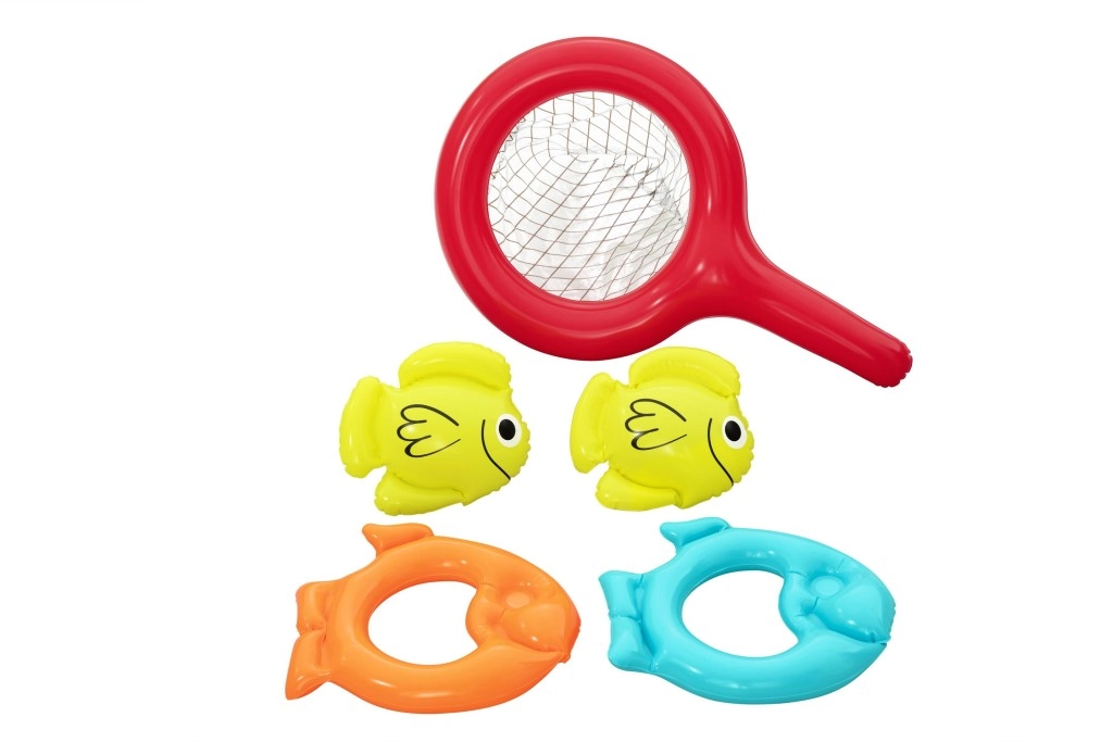 Součástí jsou dvě rybičky, dva nafukovací kroužky a podběrák. Děti mohou chytat, přehazovat i trefovat cíle a rozvíjet jemnou motoriku.