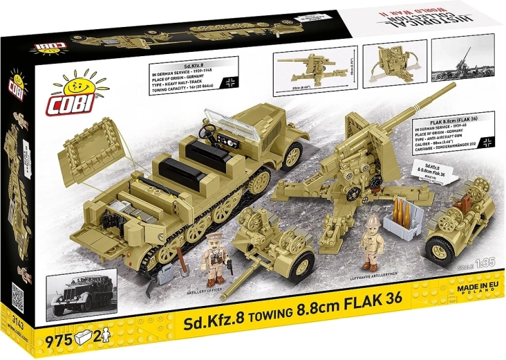 - Autentický set 2 v 1: 8,8 cm Flak 36 na přívěsu + polopásový tahač Sd.Kfz. 8