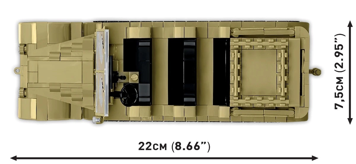 Součástí jsou 2 figurky dělostřelců v pouštních uniformách (včetně tropické přilby), pohyblivé mechanismy děla (otáčivé lože, nastavitelná hlaveň) a realistické pásy a podvozek tahače. Nechybí bedna s municí, jmenovka se škálou a čitelné obrázkové instrukce. Stavebnice je kompatibilní s dalšími značkami a splňuje bezpečnostní normy.