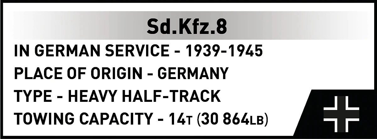 - Polopásový tahač Sd.Kfz. 8, kanón 8,8 cm Flak 36 na přívěsu