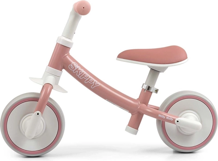 Lehoučké dětské odrážedlo MILLY MALLY Skippy v růžovo‑bílé kombinaci pomáhá dětem rozvíjet rovnováhu a koordinaci od útlého věku. Má široká plná EVA kola odolná proti propíchnutí, měkké tvarované sedlo s nastavením výšky, protiskluzové gripy a obmezovač otáčení řídítek pro větší bezpečí. Odolný ocelový rám a kompaktní rozměry zajistí pohodlí doma i venku.