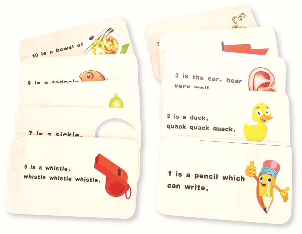 Tato montessori inspirovaná sada rozvíjí u dětí klíčové dovednosti – rozpoznávání čísel, počítání, koordinaci oko–ruka a jemnou motoriku. Dřevěné destičky s otvory a barevné kolíčky/kuličky vedou děti k přirozenému porozumění množství, porovnávání a třídění. Kartičky s ilustracemi a říkankami v angličtině přidávají hravý rozměr a rozšiřují anglickou slovní zásobu.
