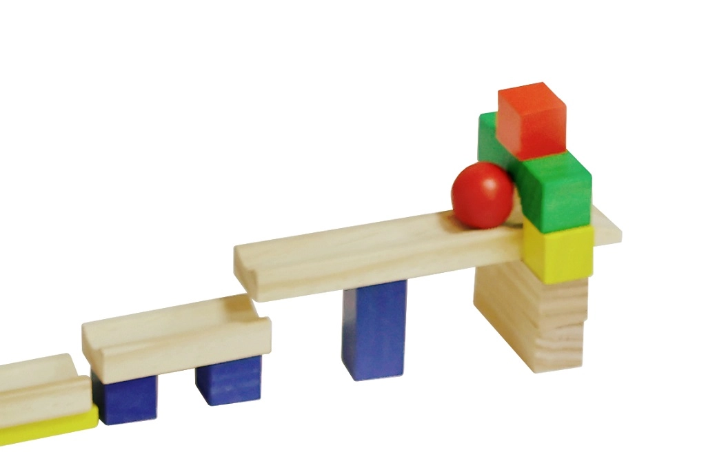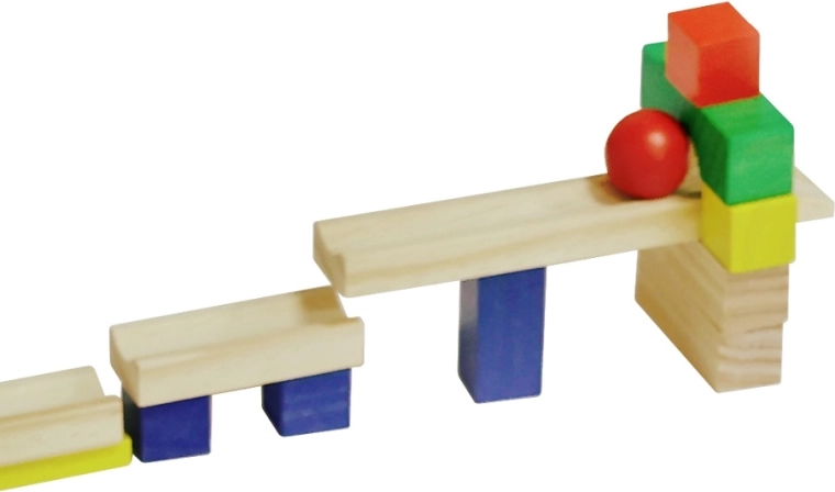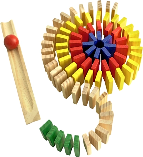 Precizně zpracované dřevěné kameny a kulička s rampou zajistí spolehlivé padání a atraktivní domino efekt bez zadrhávání.