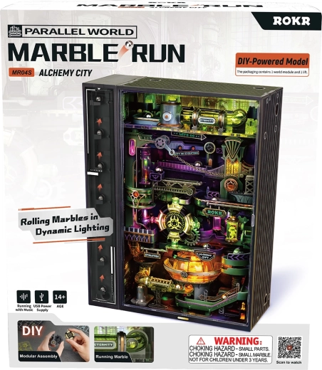 Vdechněte život městské kuličkové dráze s průhlednými tunely, výtahem a promyšlenými překážkami. Díky důmyslnému mechanickému systému se kuličky plynule vracejí na start a jízdu si užijete znovu a znovu. Barevné LED efekty vytvářejí podívanou, která vynikne přes den i večer.