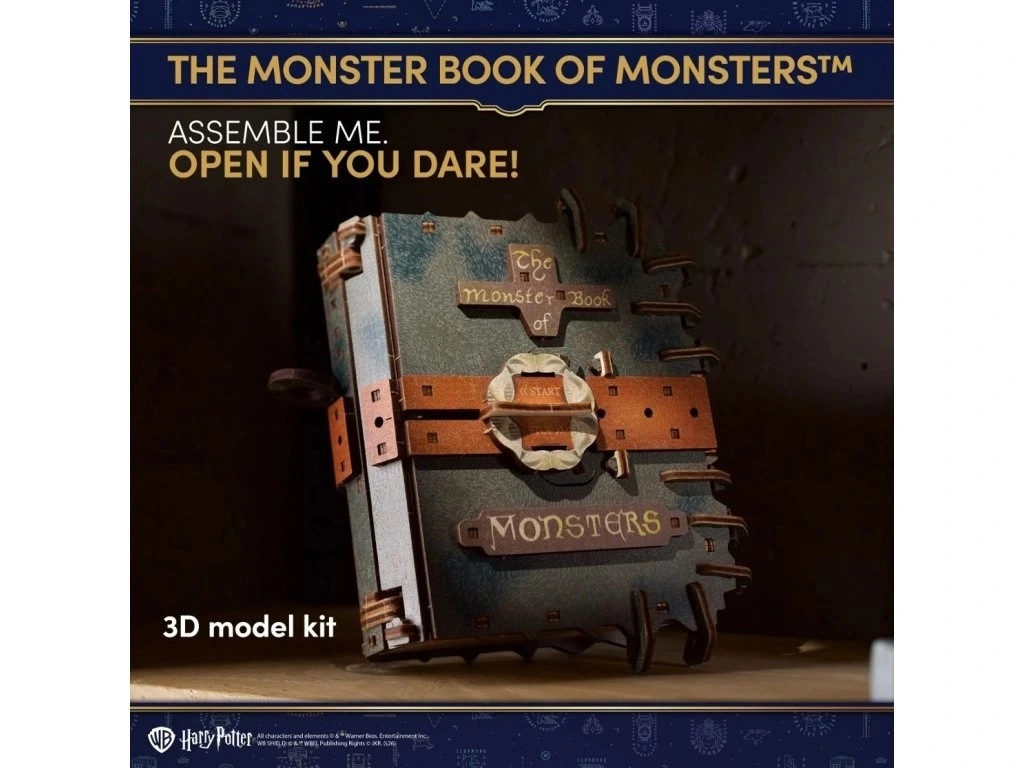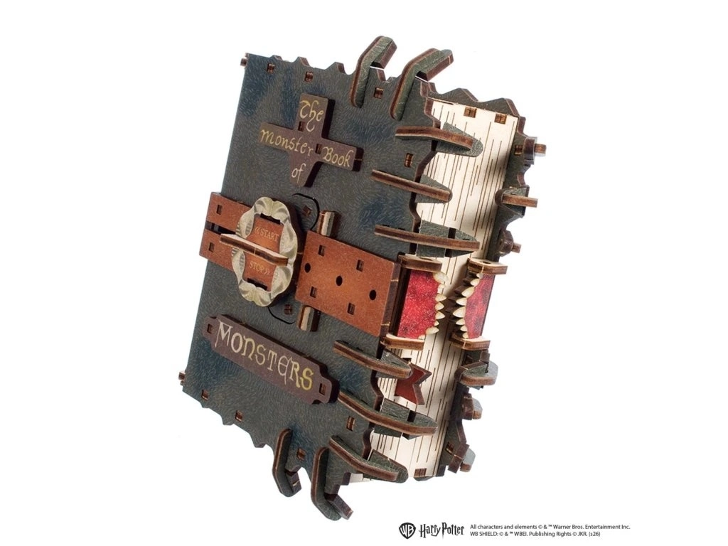 Objevte kouzelný model pro fanoušky HARRY POTTER – dřevěnou 3D skládačku UGEARS inspirovanou knihou Monster Book of Monsters. Po sestavení se kniha skutečně hýbe: pomocí tažného lanka se rozjede po hladkém povrchu, otevírá a zavírá „zuby“ a oči vyskočí při aktivaci mechanismu. Díly jsou laserově přesně vyřezané a skládají se bez lepidla, takže získáte autentickou, pohyblivou dekoraci i chytrou technickou hračku podporující logické myšlení.
