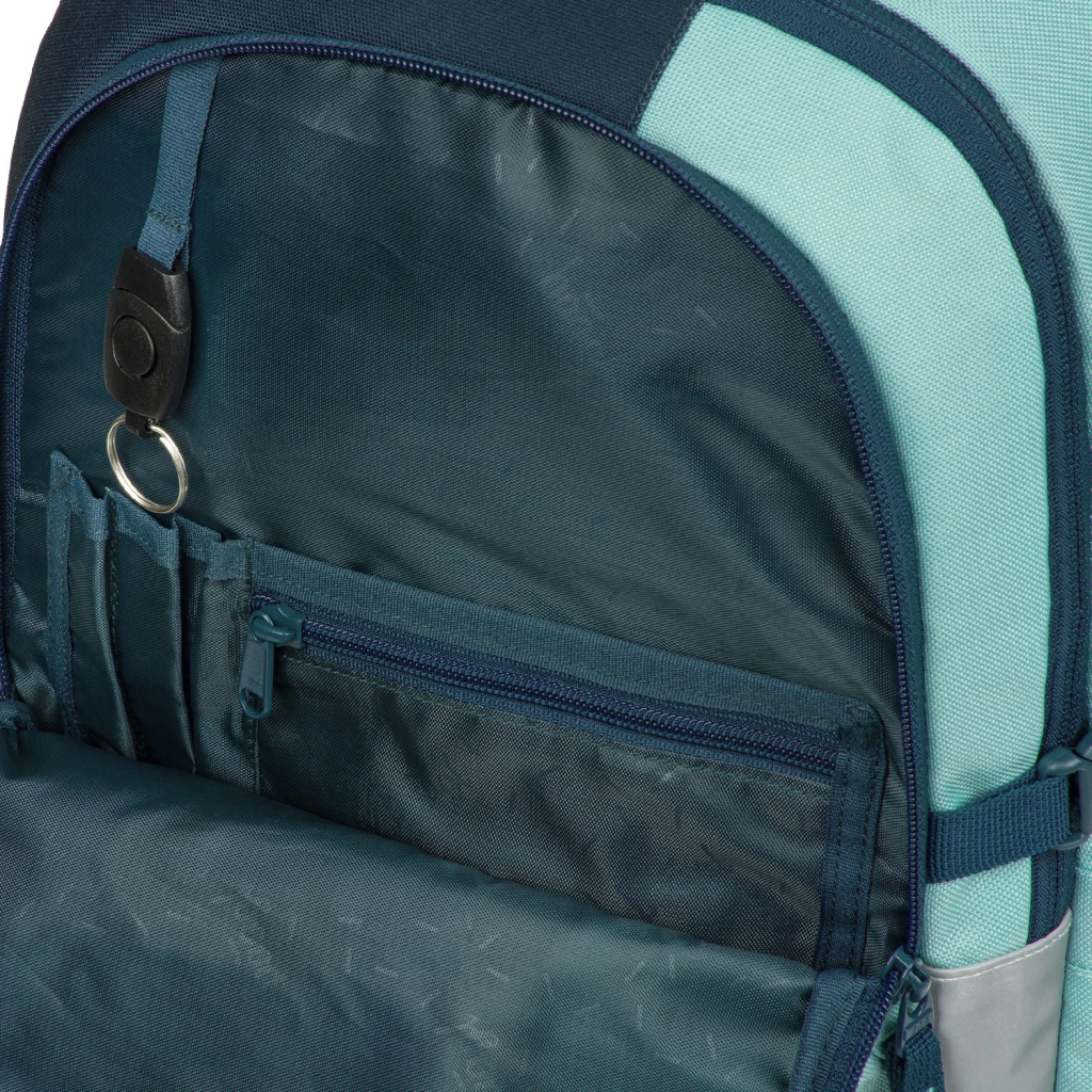Tři samostatně uzavíratelné komory poskytují přehledné uspořádání školních potřeb. Uvnitř najdete organizér, kapsy na drobnosti, kroužek na klíče a polstrovanou 15" kapsu na notebook nebo tablet. Postranní kapsy z pevného materiálu jsou ideální na láhev s pitím. Přední popruhy snadno přichytí skateboard, mikinu či bundu.