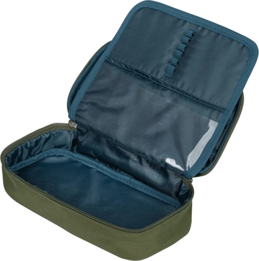 - Jednopatrový penál na zip s dvojitou výklopnou chlopní, vnitřní kapsa, okénko na rozvrh, bez náplně
