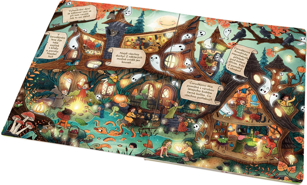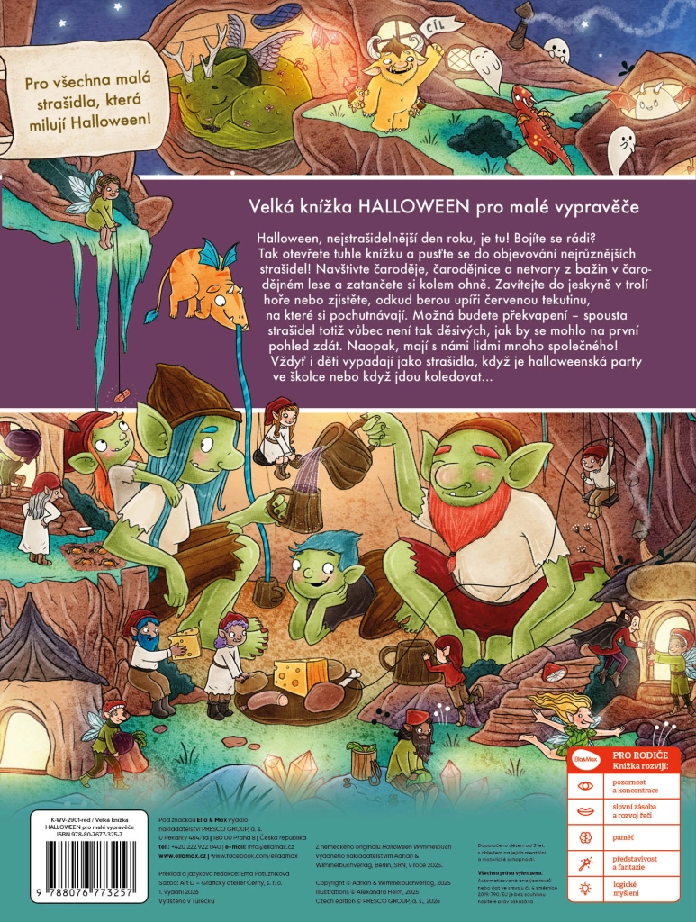 Halloween je tady! Otevřete knihu a vydejte se s dětmi na výpravu do pohádkových světů plných kouzelných postav. Čeká vás návštěva u čarodějnic, tajuplná jeskyně v trolí hoře nebo setkání s netvory z bažin. A možná zjistíte, že i upíři mají své malé tajemství a nejsou tak hroziví, jak by se mohlo zdát.