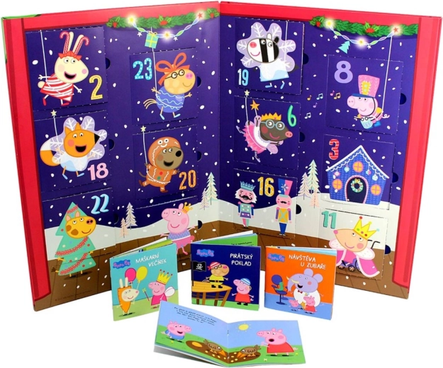 Zkraťte si čekání na Ježíška s oblíbeným prasátkem Peppou! Tento velký adventní kalendář PEPPA PIG ukrývá 24 malých knížeček s krátkými příběhy o maškarním večírku, výletu na lodi i návštěvě cirkusu. Děti si tak každý den otevřou jedno okénko a objeví nové čtení plné zábavy – a po Vánocích lze knížky vrátit zpět do okének a užívat si je znovu a znovu.