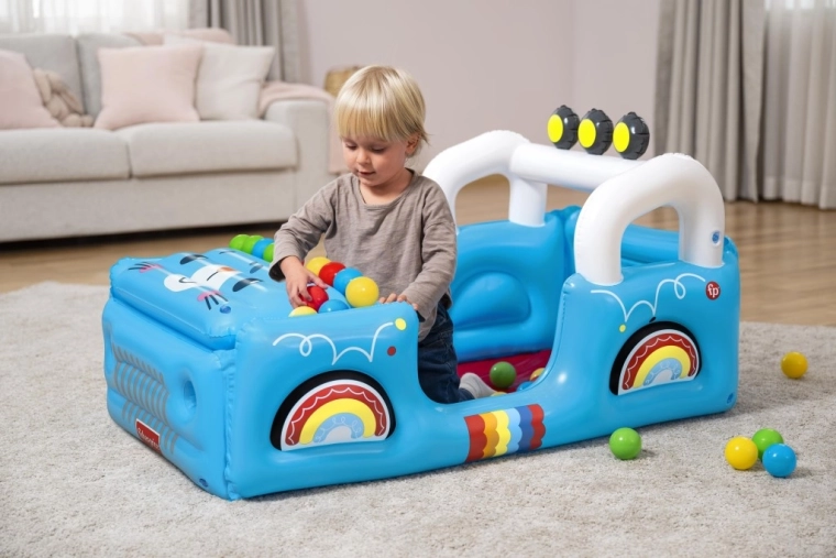 - Bezpečný a měkký prostor pro batolata díky nafukovacím stěnám.