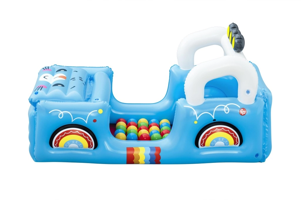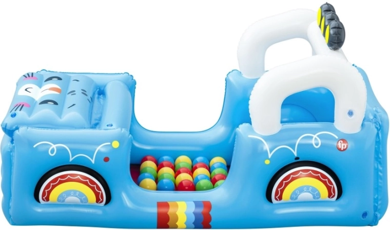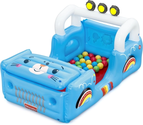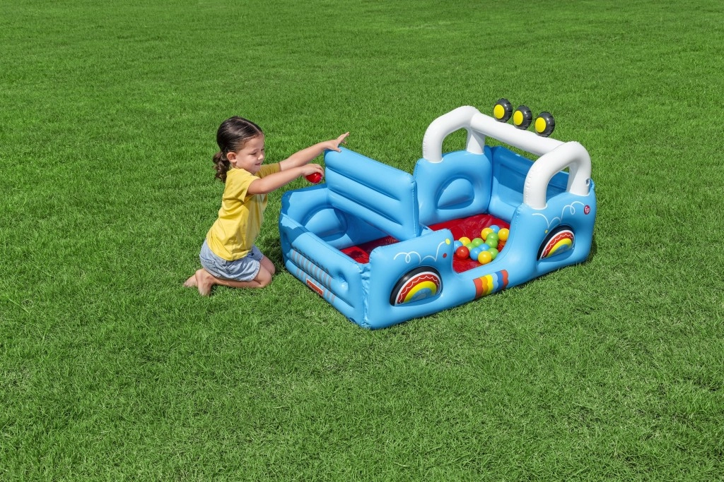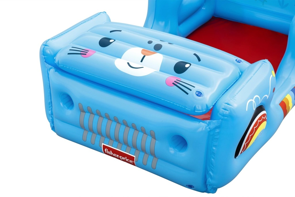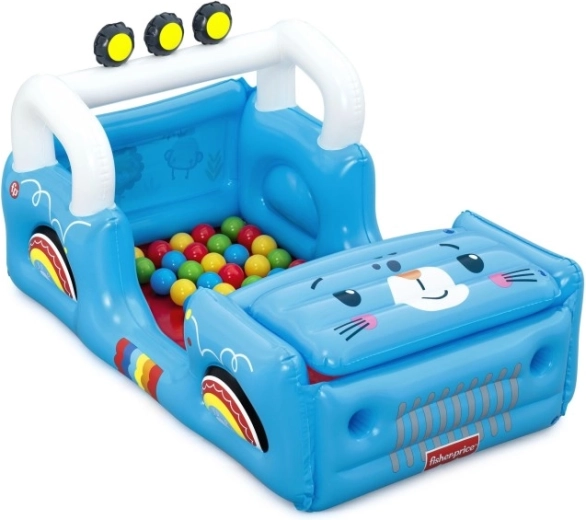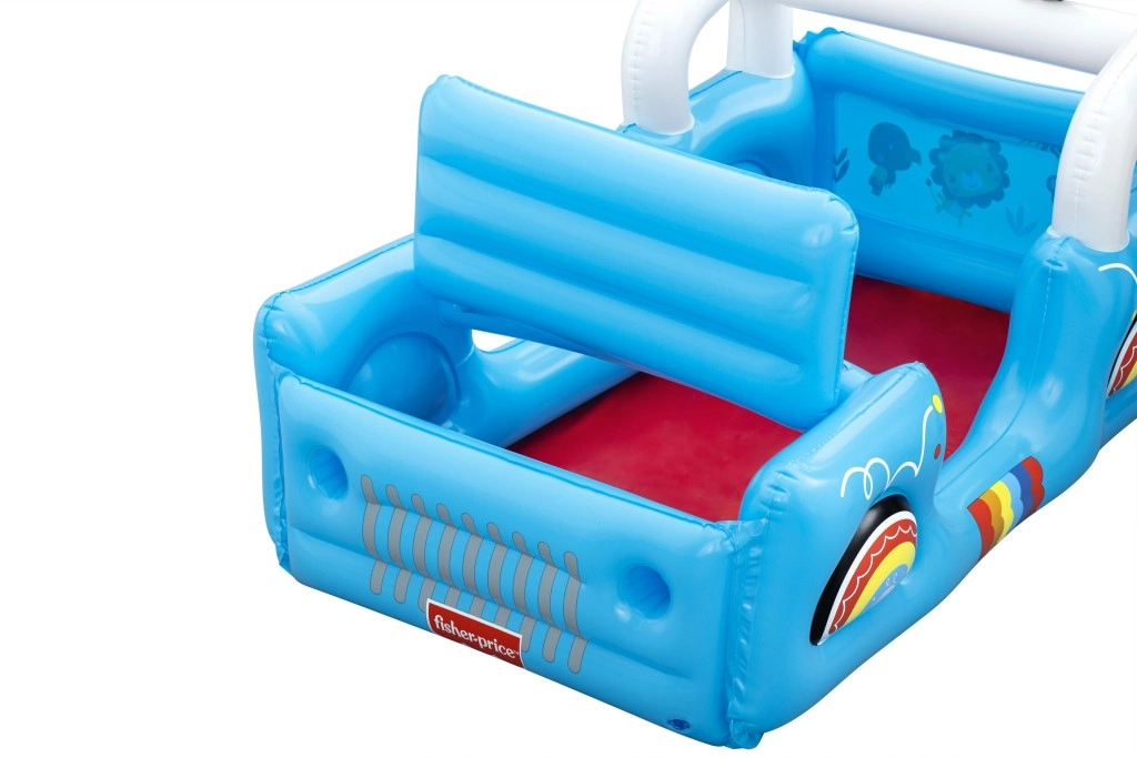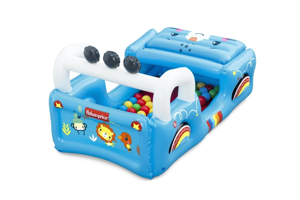Zábavné nafukovací hrací auto FISHER-PRICE ve stylu safari promění každý pokoj i zahradu v bezpečný koutek plný radosti. Nabízí měkké, polstrované stěny, prostorný bazének s míčky a praktickou otvírací kapotu pro snadný přístup. Součástí je 25 barevných míčků, které rozvíjejí jemnou motoriku a koordinaci oko–ruka. Odolný materiál, bezpečnostní ventily a záplata pro opravy zaručují dlouhou životnost.