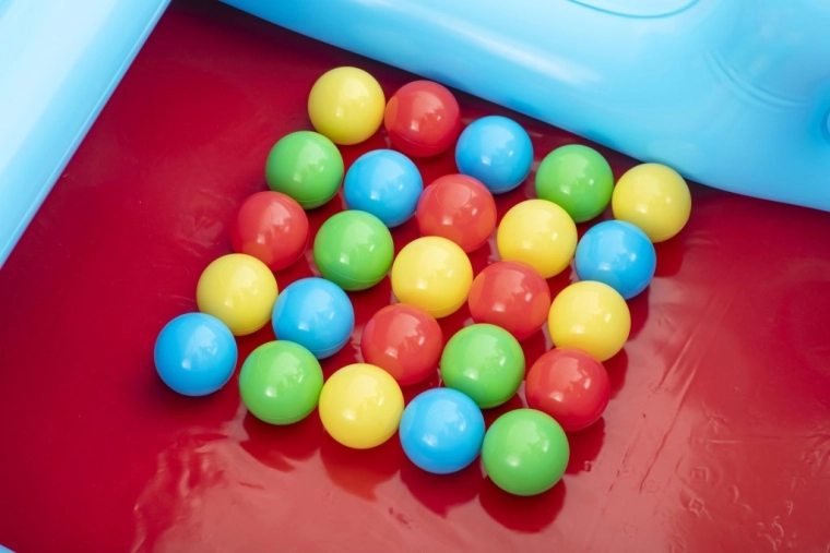 Součástí je 25 míčků v zářivých barvách, které rozvíjejí jemnou motoriku, koordinaci oko–ruka i sdílenou hru s kamarády.