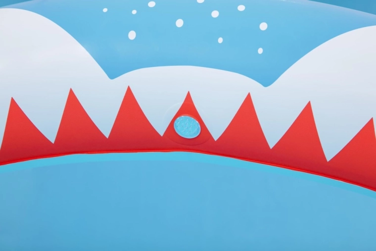 - Stylový design – přátelský žralok láká ke hře na zahradě i na dvorku.
