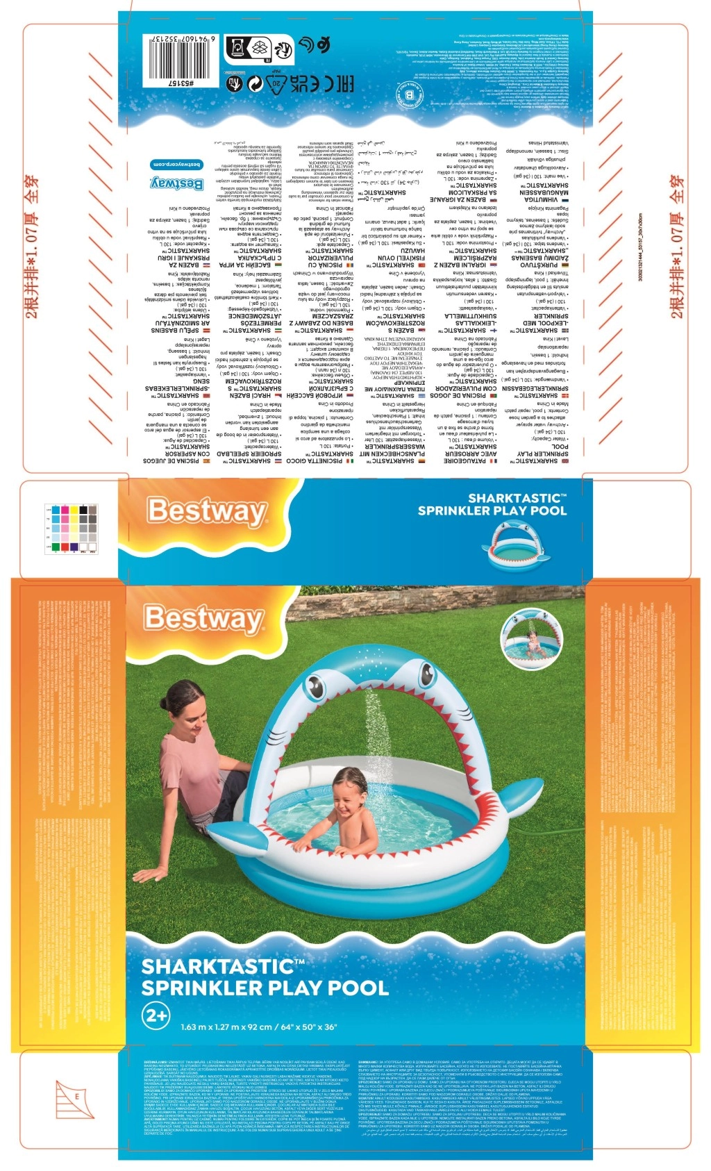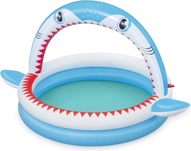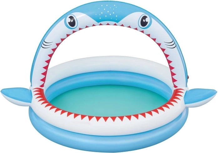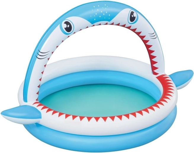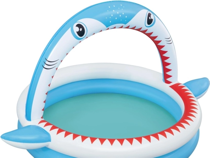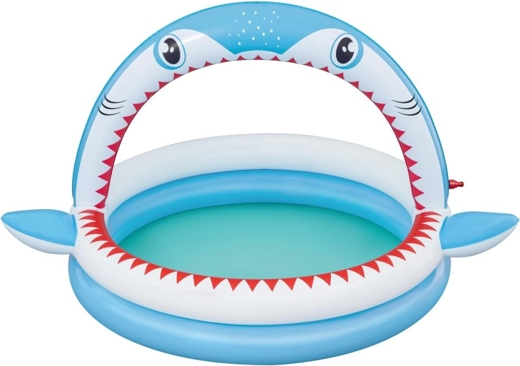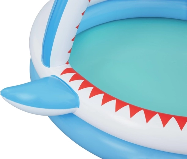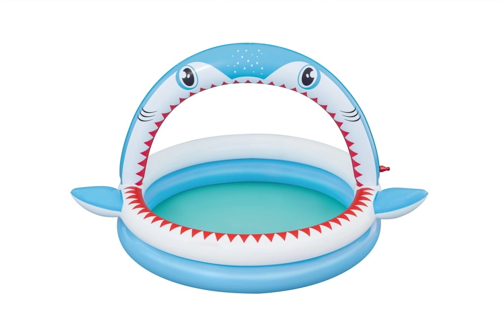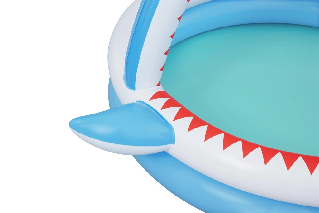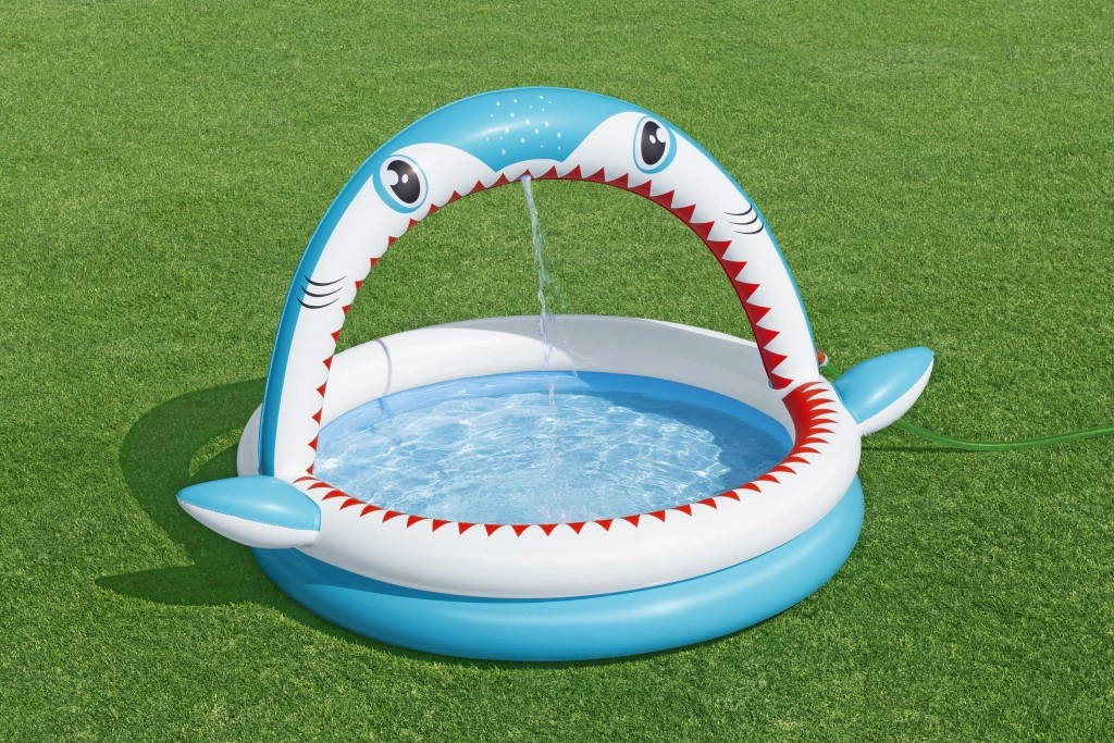 Zábavný nafukovací bazének ve tvaru žraloka s integrovanou sprškou pro osvěžení v horkých dnech. Nabízí prostorné rozměry 163 × 127 × 92 cm, měkké nafukovací stěny a odolný PVC materiál. Ideální pro děti od 2 let, snadno se nafukuje, připojí k zahradní hadici a během chvilky je připraven k vodním radovánkám.
