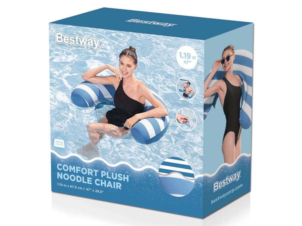 Užijte si letní relax na maximum. Vodní křeslo BESTWAY Comfort Plush kombinuje měkký, sametový povrch s chladivým mesh sedákem, který příjemně ochlazuje tělo při odpočinku na hladině. Díky efektu změny barvy získá plovák po namočení atraktivnější, sytější odstín.