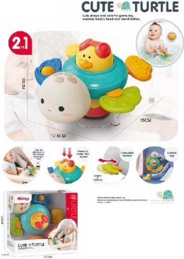 Roztomilá smyslová želva s otočnou kačenkou potěší i ta nejmenší miminka. Podporuje rozvoj smyslů, jemné motoriky a koordinační dovednosti díky bezpečné otočné funkci a příjemným rozměrům do dětské ručičky.