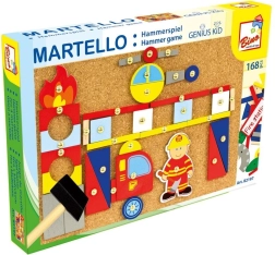 Tato kreativní stavebnice s motivem hasičů nadchne všechny malé stavitele. Díky velkému výběru barevných dřevěných tvarů mohou děti vytvářet požární auta, stanice i vlastní příběhy. Jednoduché přitloukání na korkovou podložku je intuitivní a bezpečné, zároveň skvěle rozvíjí jemnou motoriku a koordinaci oko–ruka.