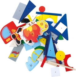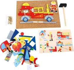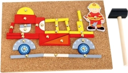 Barevné dřevěné tvary a obrázky na korkové podložce podporují fantazii a umožní skládat požární auta, stanice i celé scény.