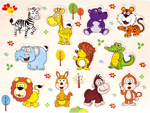 Tato velká dřevěná skládačka se zvířátky ze safari nadchne malé objevitele. Barevné vkládací dílky se snadno drží a pomáhají dětem trénovat motorické dovednosti i logické uvažování. Stabilní dřevěná deska drží tvar a zajišťuje pohodlné skládání.