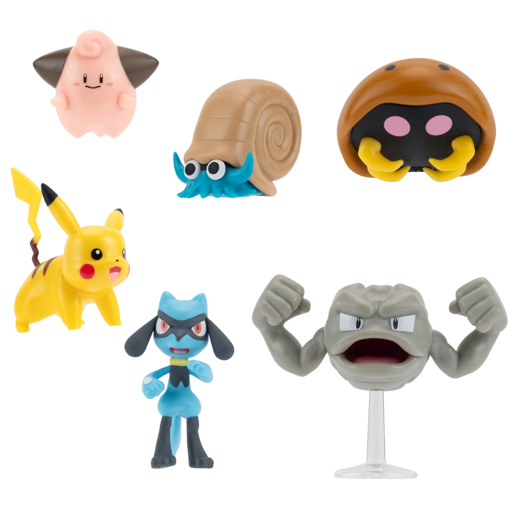 V balení najdete šest populárních Pokémonů – od ikonického Pikachu přes roztomilou Cleffa a energického Riolu až po klasiky z regionu Kanto: Geodude, Omanyte a Kabuto. Sada je ideální jako dárek pro děti i sběratele, rozšíření stávající kolekce nebo ozdoba herního koutku.