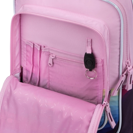 Tři samostatné komory, vnitřní organizér a polstrovaná kapsa pro notebook nebo tablet udrží školní výbavu přehledně a bezpečně.