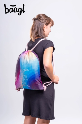 Penál s dvojitou výklopnou chlopní, vnitřní kapsou a okénkem na rozvrh, vyrobený z recyklovaných materiálů. Sáček se stahováním na záda na sport i přezůvky.