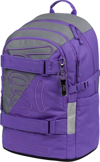 Tři samostatně uzavíratelné komory zajišťují přehledné uložení školních potřeb. Vnitřní organizér a polstrovaná kapsa na 15″ notebook nebo tablet chrání elektroniku, postranní kapsy pojmou láhev na pití. Přední kompresní/uchycovací pásky bezpečně přichytí skateboard nebo mikinu.