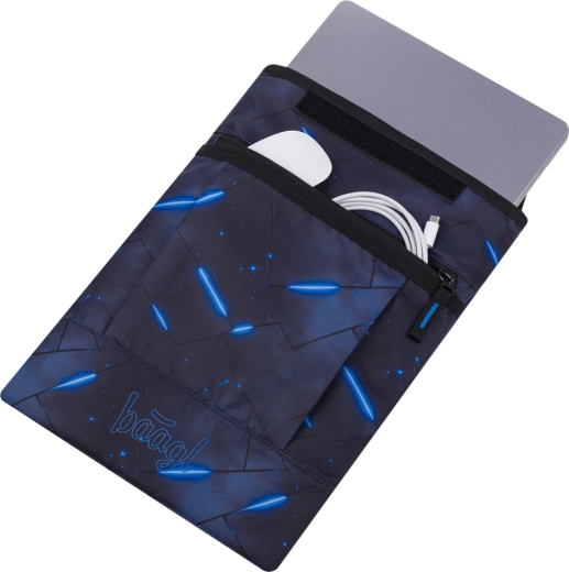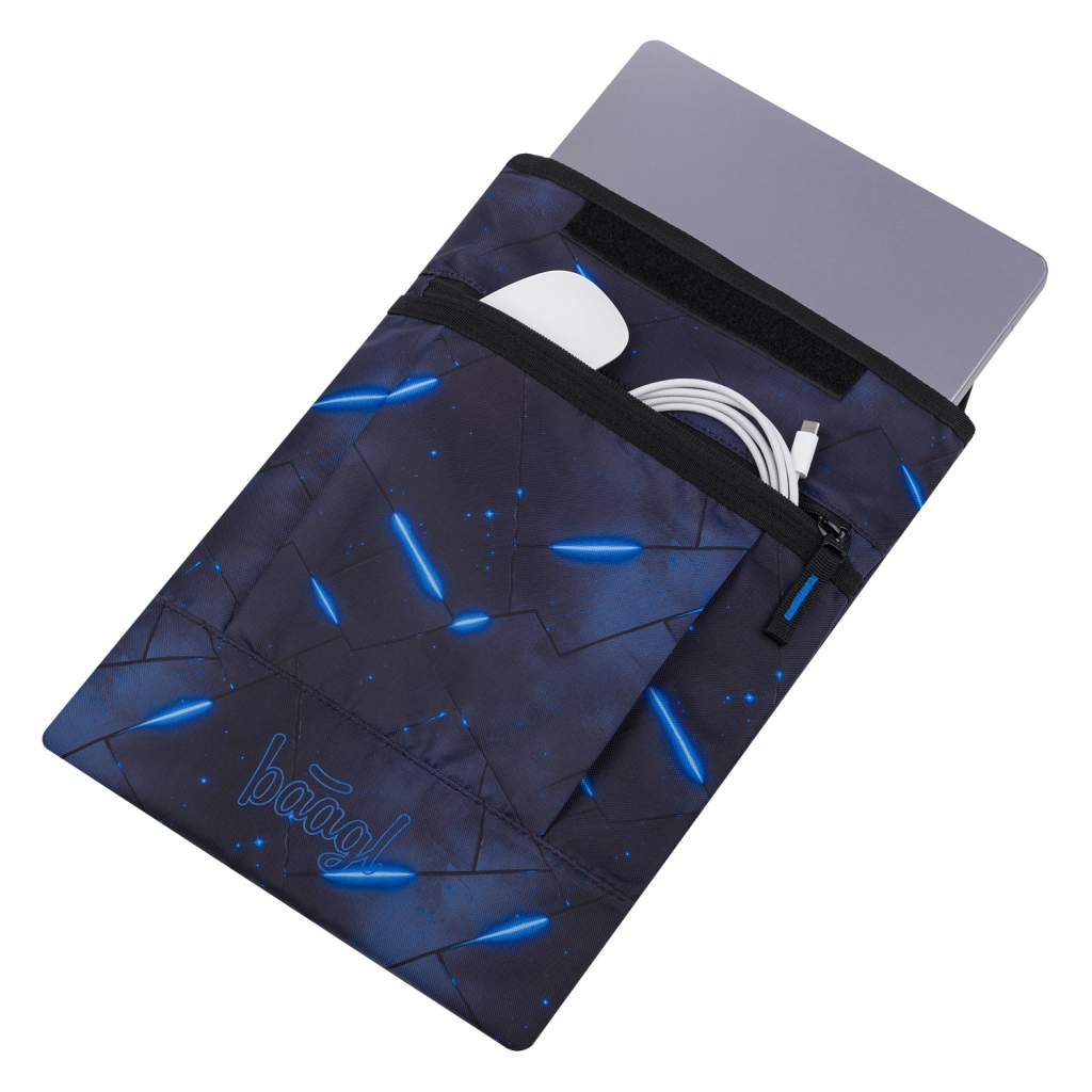 Díky možnosti výběru z mnoha motivů snadno sladíte pouzdro s dalším vybavením BAAGL. Přední kapsa pojme nabíječku, myš nebo kabely, takže máte vše prakticky po ruce. Materiál splňuje Global Recycled Standard (GRS), což potvrzuje jeho šetrnost k přírodě i odpovědnou výrobu.
