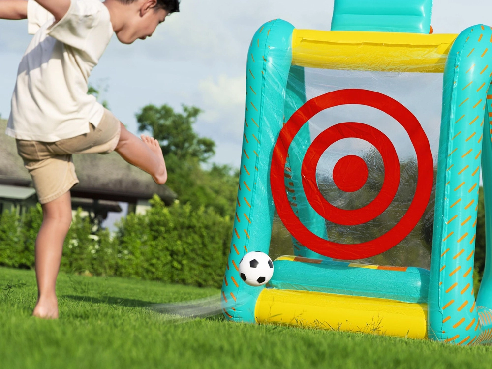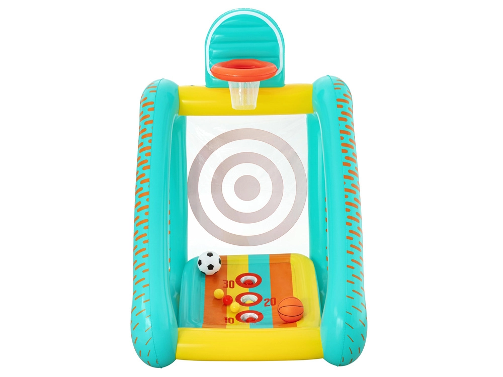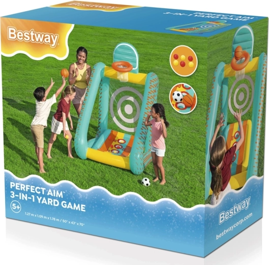 Nafukovací multifunkční set Bestway Perfect Aim 3v1 promění dvůr, zahradu nebo prostorný obývák v arénu plnou pohybu. Velkorysé rozměry umožní hrát více dětem najednou a měkké stěny z PVC zvyšují bezpečnost při každém odrazu.