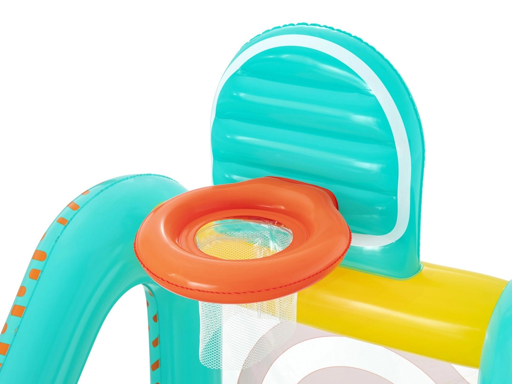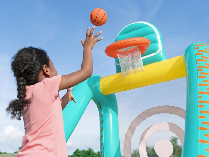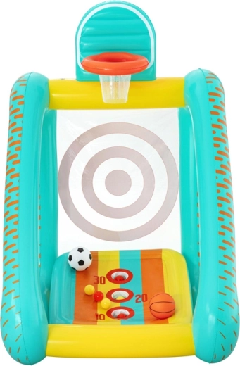 Rozjeďte zábavu na zahradě i doma s nafukovacím herním centrem 3v1 od značky Bestway. Děti si užijí basketbal, fotbal i hody na cíl v jednom setu. Stabilní vodou plnitelná základna, měkká a bezpečná konstrukce a kompletní příslušenství včetně ruční pumpičky a míčů zajistí okamžitou a bezpečnou hru pro děti od 5 let.