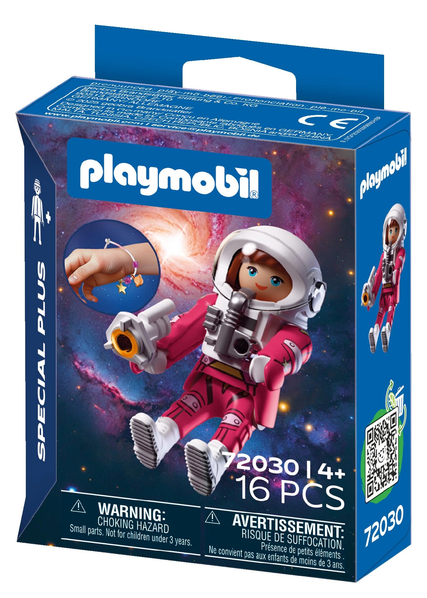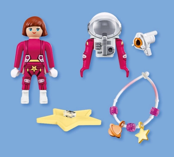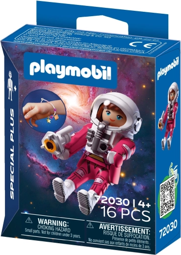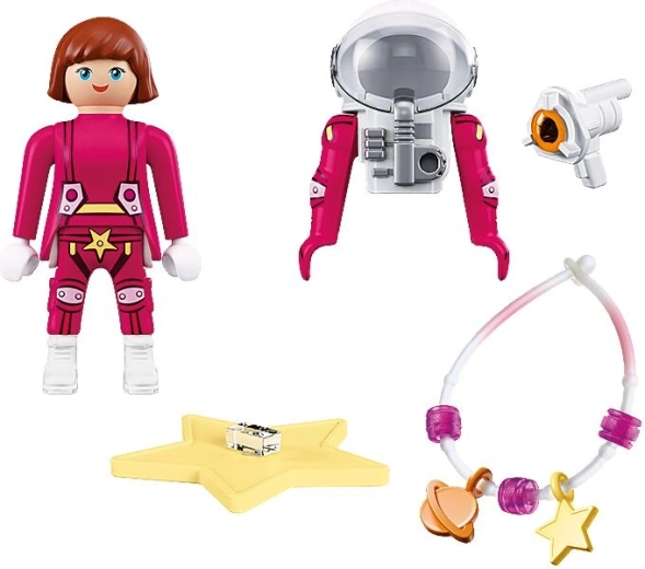 Objevte vesmír s kreativní sadou PLAYMOBIL Special Plus: figurka astronautky, svítící silikonový náramek s korálky a bohaté doplňky pro hraní rolí. Skvělé pro rozvoj fantazie, kompatibilní s dalšími sety PLAYMOBIL.