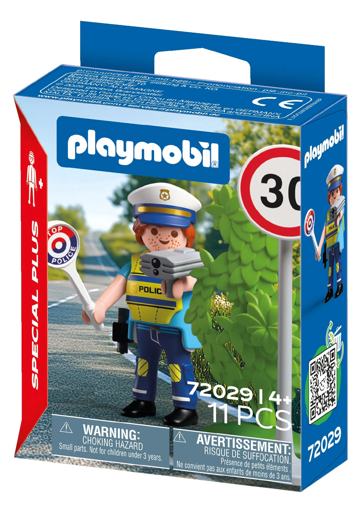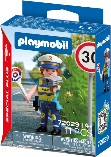 Postavte se do služby a dohlížejte na bezpečnost na silnici s hracím setem PLAYMOBIL Special Plus. Obsahuje policistu s radarem, značku 30 km/h, STOP paletu a další doplňky pro realistické dopravní scénky a kreativní hraní rolí.