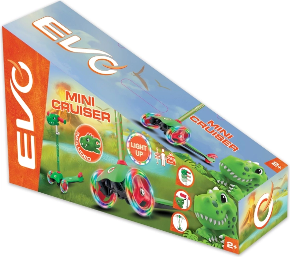 Koloběžka EVO Light Up Mini Cruiser je skvělou volbou pro první jízdy na odrážedle/koloběžce. Díky stabilní tříkolové konstrukci a balančnímu řízení nakláněním si děti přirozeně trénují rovnováhu a koordinaci. Široké nášlapné prkno a pohodlné TPR rukojeti zajišťují jistý úchop i komfort při jízdě.